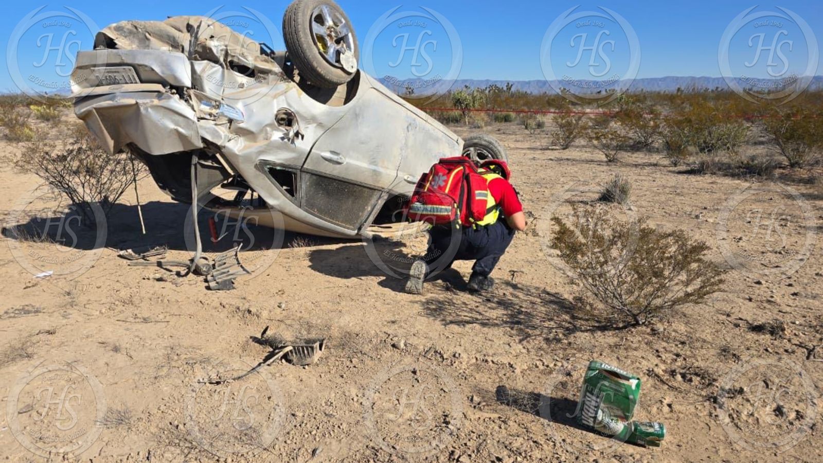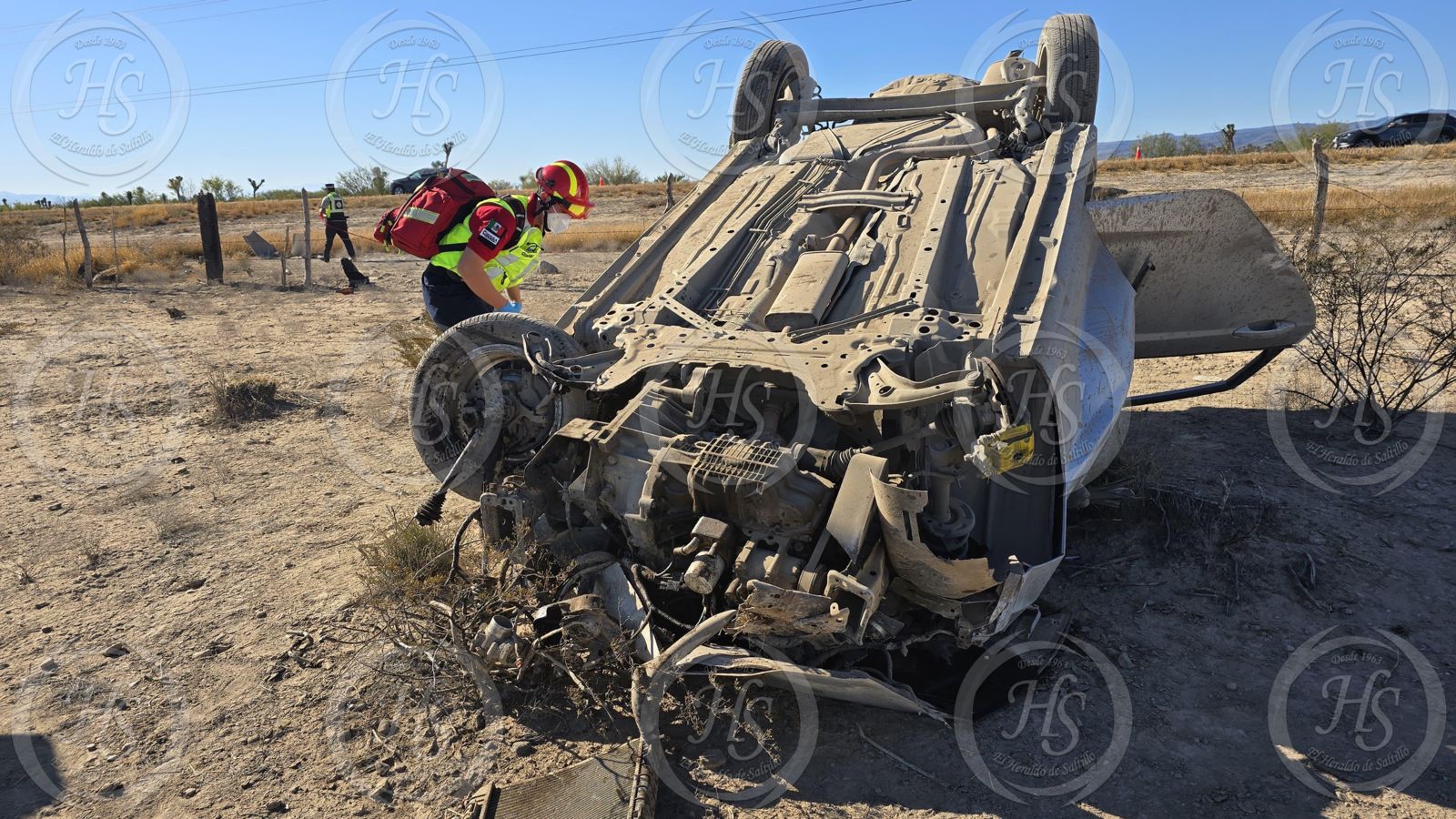 Un fatal accidente se registró en el kilómetro 85+500 de la carretera Monclova, dentro del municipio de Ramos Arizpe, donde un vehículo Ford Fiesta con placas FFT-909-D salió del camino y terminó volcado sobre terracería, a aproximadamente 40 metros de la carpeta asfáltica.