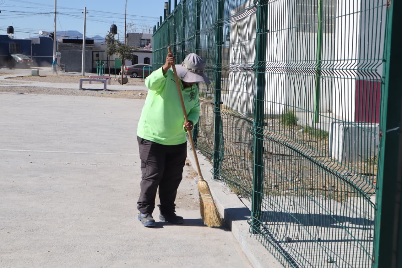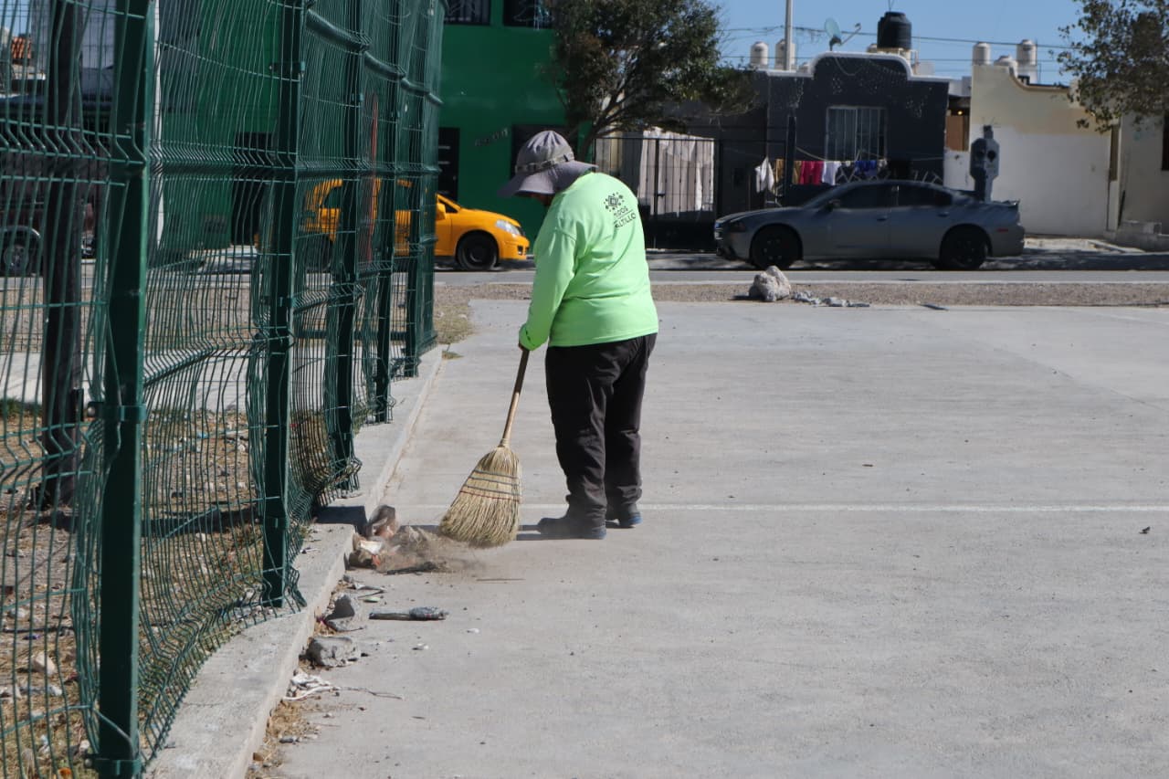 Brigadas de “Aquí Andamos” acudieron a las calles Misión de San Bernardo y Misión San Francisco, de este sector de la ciudad, en donde realizaron una limpieza profunda de la plaza pública, así como deshierbe y poda en las áreas verdes de este lugar visitado por cientos de vecinos, quienes aprovechan las diversas actividades ofrecidas en el Centro Comunitario de esta unidad habitacional.