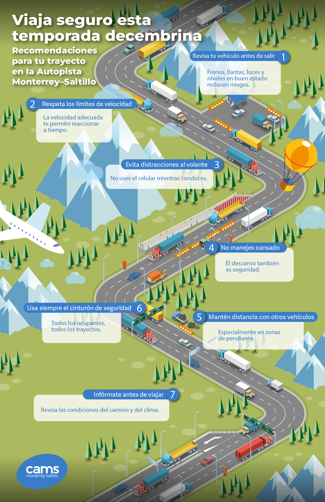 Durante la temporada invernal, caracterizada por el incremento en la movilidad regional y por condiciones climáticas típicas del invierno que requieren mayor atención al conducir, la Concesionaria Autopista Monterrey–Saltillo (CAMS) mantiene y refuerza su esquema de monitoreo, atención y respuesta vial para brindar trayectos más seguros a los usuarios.