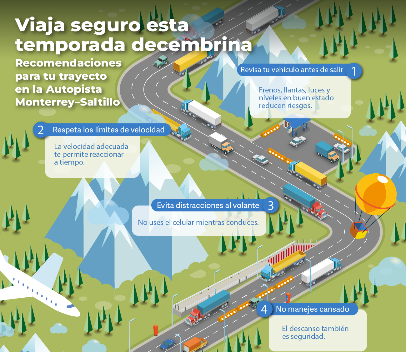 CAMS refuerza medidas de seguridad vial en la autopista Monterrey–Saltillo durante la temporada decembrina