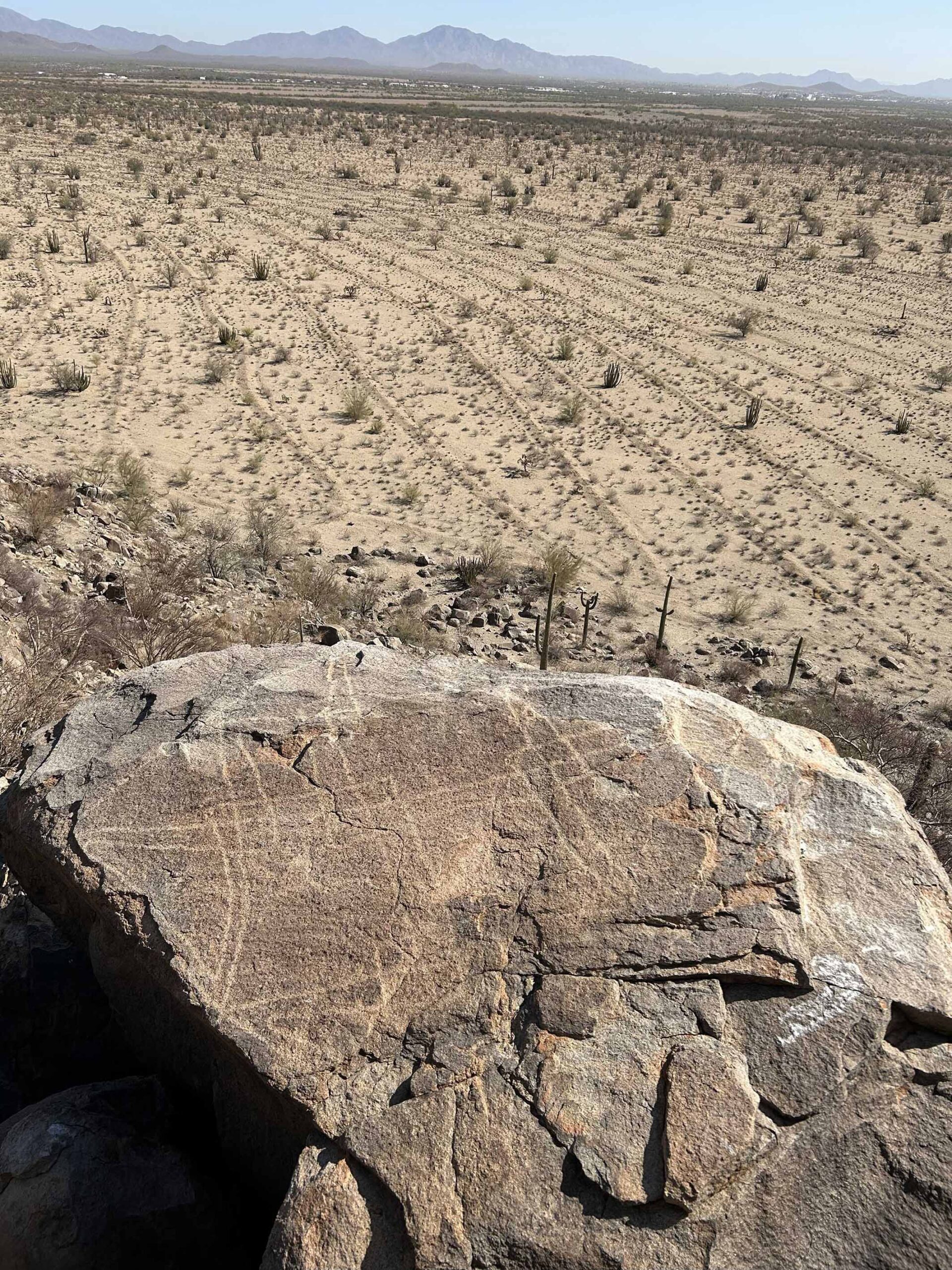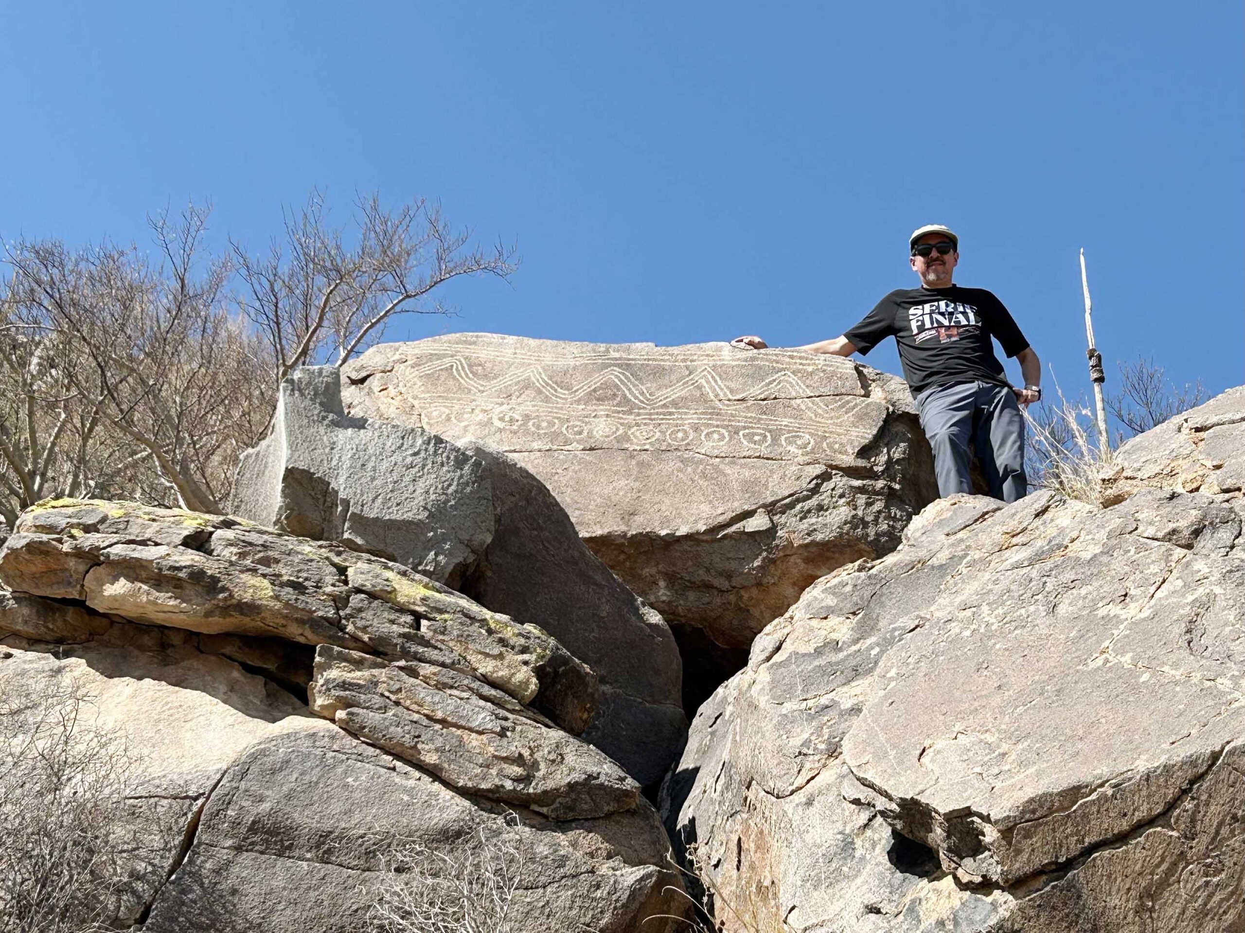 En este caso, ese desierto estuvo habitado por la llamada Cultura Trincheras, cuyo rango de ocupación va del año 200 y hasta el 1450 de nuestra era, la cual, además de petroglifos, dejó cerámica decorada con color púrpura. Sin embargo, ese patrimonio podría estar en peligro debido a las visitas fuera de control que pueden dañarlo, alertó.