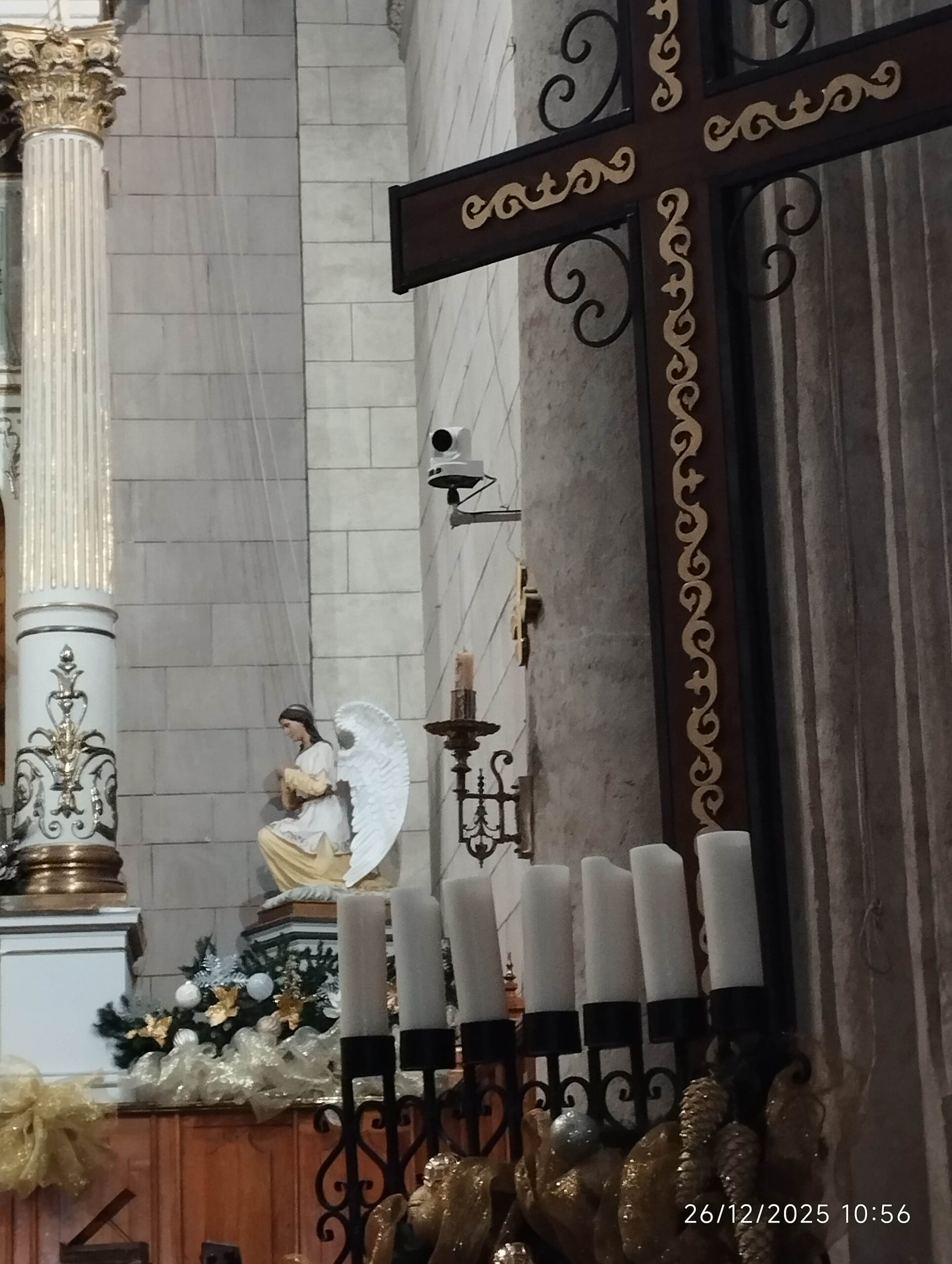 Sin embargo, conforme se avanza al altar, justo a los lados se cuenta con cámaras de última generación con audio e imágenes de alta resolución que se asemejan a las de reconocimiento facial y que apuntan directo al frente donde se llevan a cabo las homilías de los diferentes sacerdotes y el mismo obispo de la Diócesis de Saltillo, Hilario González García.