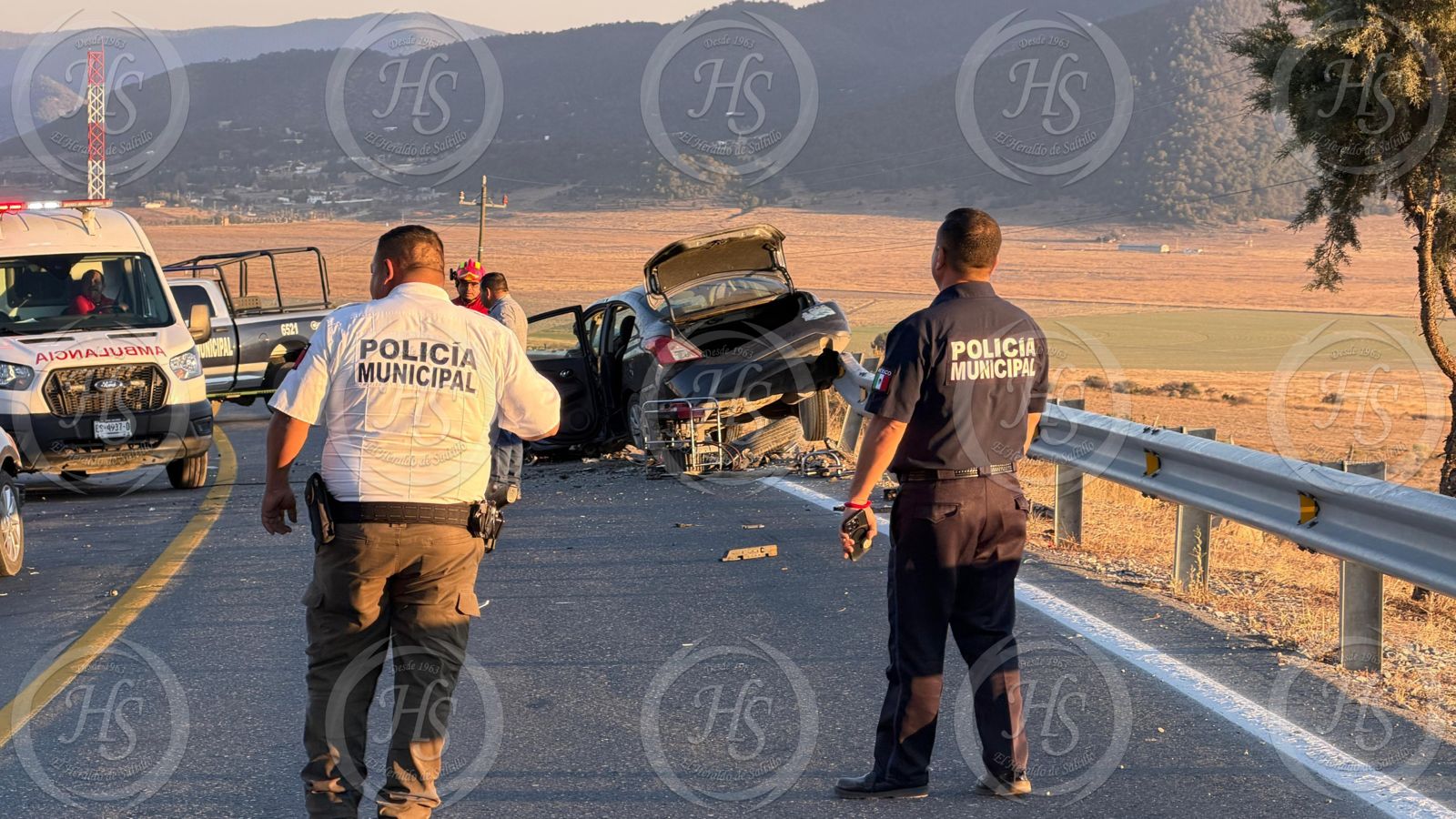 De acuerdo con las primeras investigaciones, el conductor de un vehículo Nissan Sentra invadió el carril contrario, lo que provocó el impacto frontal contra un automóvil Nissan Versa.