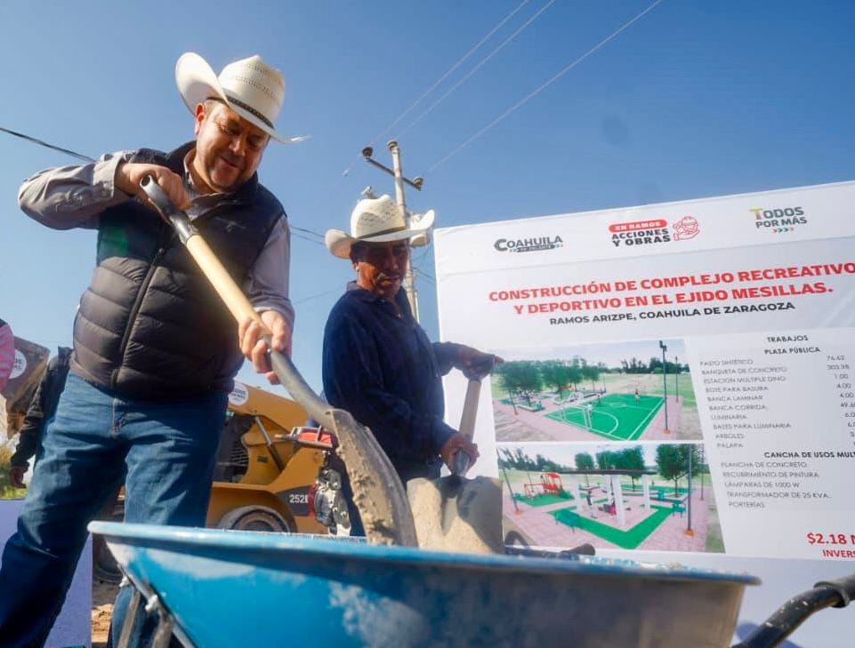 Ejido Mesillas, municipio de Ramos Arizpe, Coahuila.- El Gobierno Municipal dio inicio a la construcción del complejo recreativo y deportivo en el ejido Mesillas, una obra que beneficiará directamente a cerca de 250 pobladores y que representa un paso firme en el fortalecimiento de los espacios de convivencia, recreación y desarrollo comunitario en la zona rural del municipio.