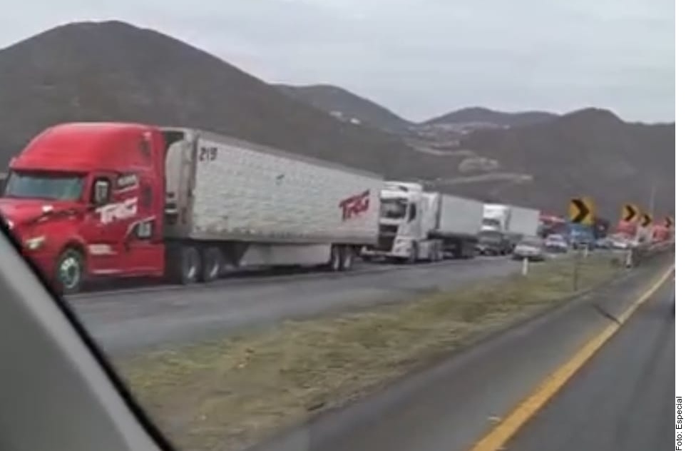 Otros usuarios que circulaban con dirección a Monterrey publicaron imágenes de largas filas de vehículos ligeros, autobuses y unidades de carga detenidos sobre los carriles hacia Saltillo.
