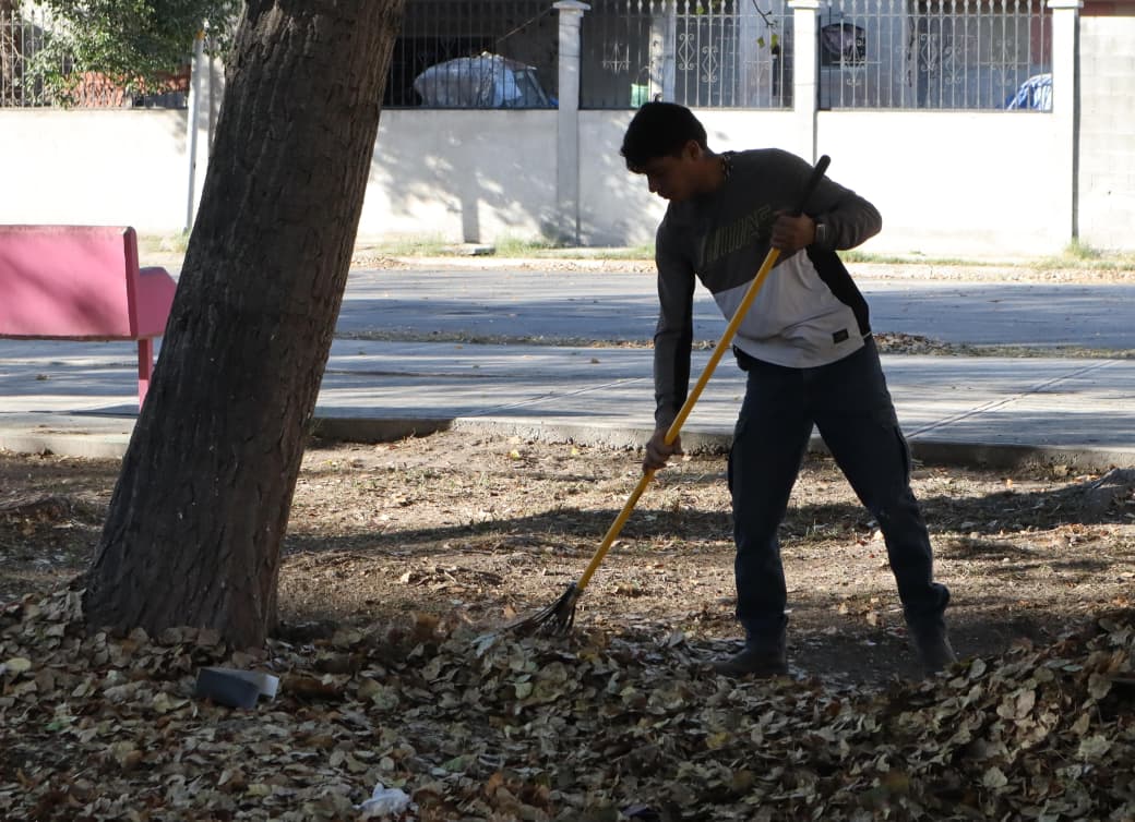 Por instrucción del alcalde Javier Díaz, personal municipal trabaja para conservar y ofrecer espacios públicos dignos, seguros y en óptimas condiciones para la convivencia social, a través de acciones permanentes de limpieza y mantenimiento en áreas verdes y plazas públicas de la ciudad.