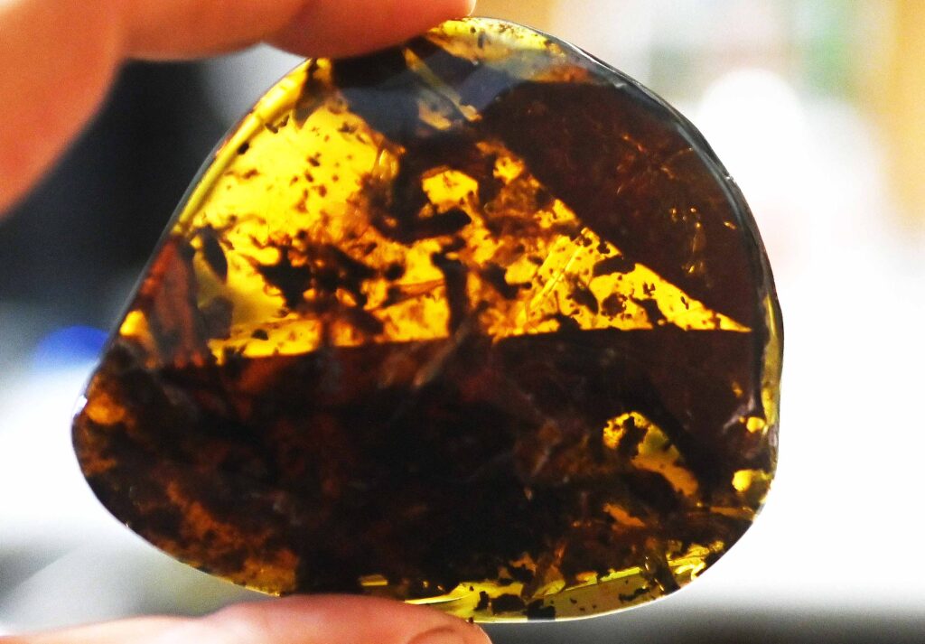 Recordó que el ámbar es una resina fosilizada y, al ser producto de una planta, partes de esta como hojas, flores y tallos pueden quedar atrapados en ella.