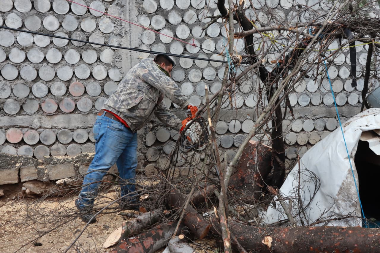 Como parte de las acciones del Gobierno de Saltillo de prevención y vigilancia ante las condiciones climáticas, personal de “Aquí Andamos” atendió el llamado de la ciudadanía para retirar troncos y ramas caídas debido a las inclemencias del tiempo, y que afectaban a vecinos de una vivienda de la colonia Lomas de Lourdes.