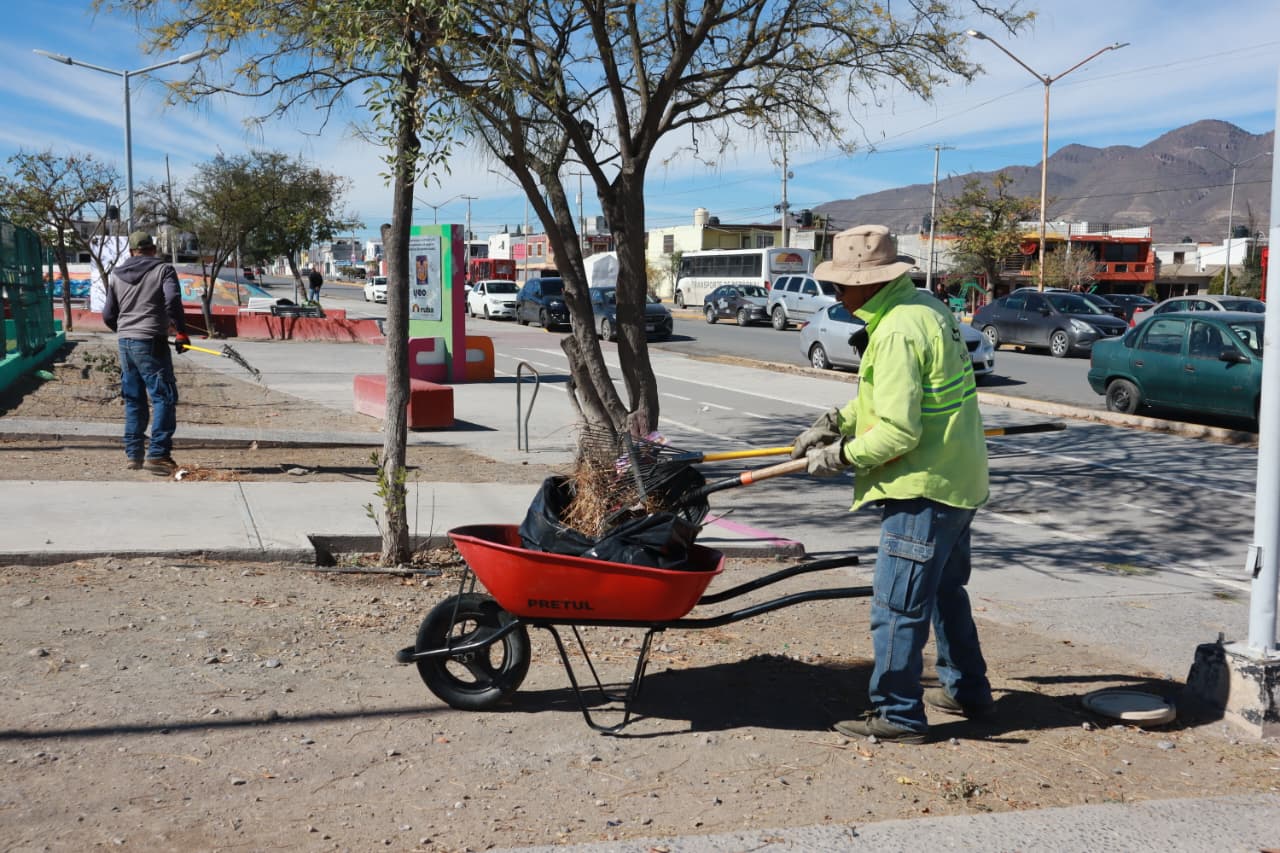 Como parte de la estrategia del alcalde Javier Díaz González para la recuperación de los espacios públicos en beneficio de las y los saltillenses, personal de la Dirección de Medio Ambiente y Desarrollo Sustentable atendió de manera integral la plaza ubicada en la colonia Saltillo 2000.
