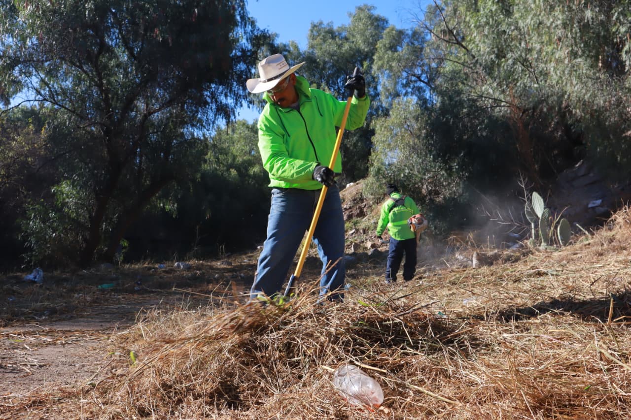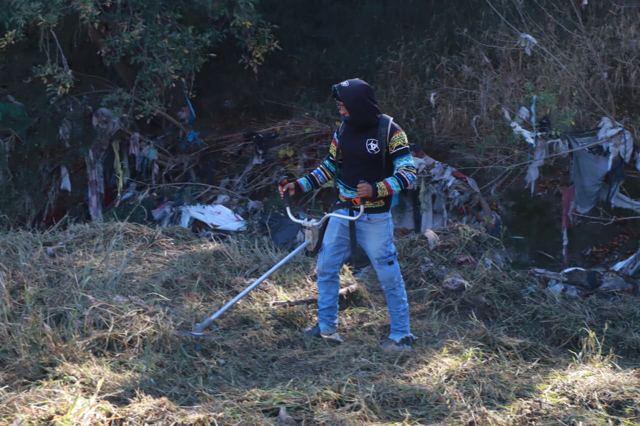 Asimismo, brigadas del programa “Aquí Andamos” continúan con labores de retiro de basura, escombro y maleza acumulada en el cauce del Arroyo del Pueblo, a la altura de la calle Bordo del Ferrocarril, entre la calzada Francisco I. Madero y la calle Lerdo de Tejada.