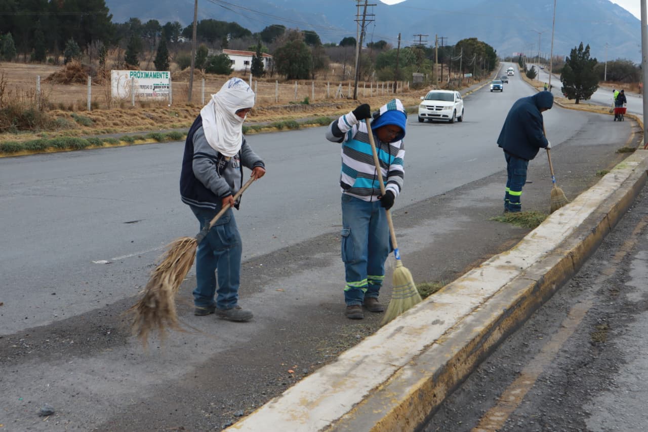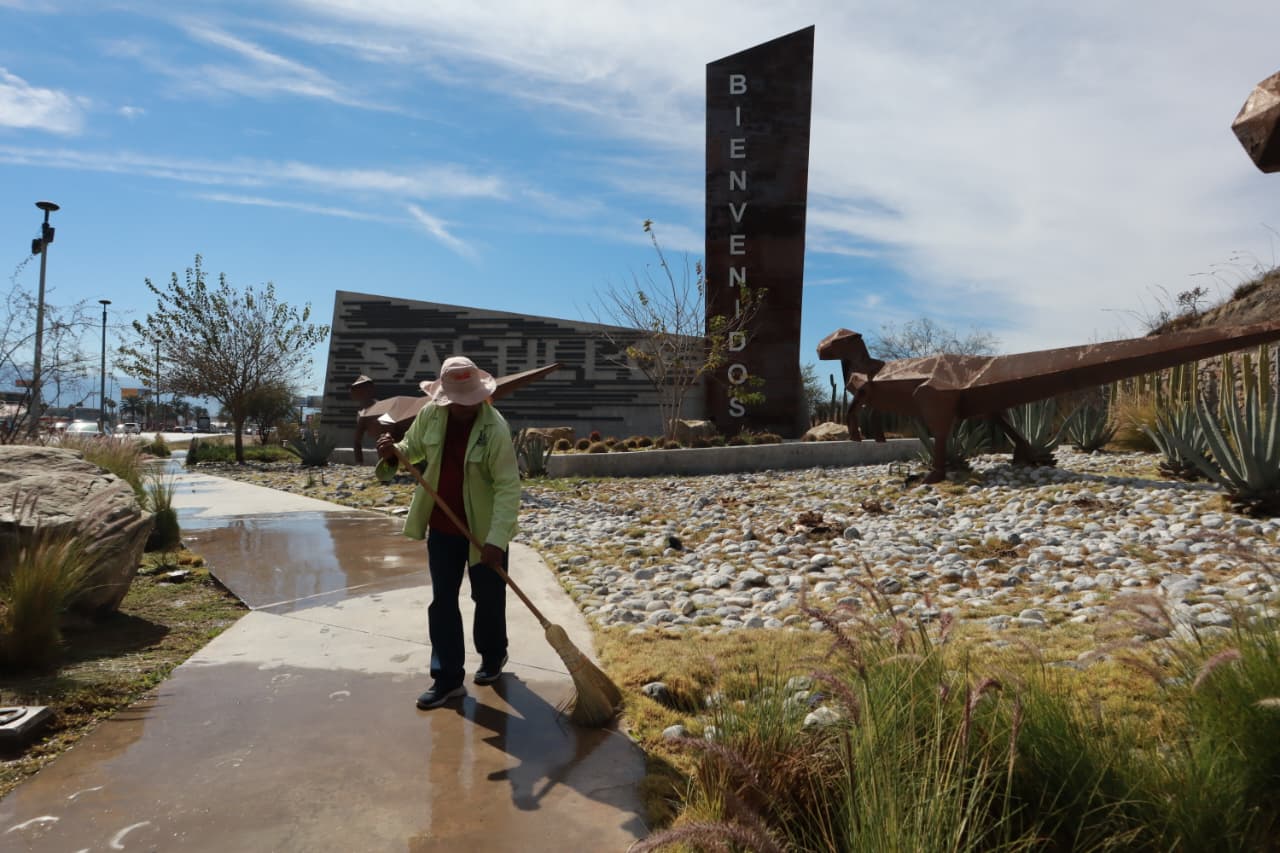 Además, cuadrillas municipales reforzaron las acciones de atención y embellecimiento en la entrada norte de Saltillo, con trabajos de limpieza general y riego de áreas verdes.