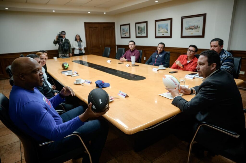 Durante su visita a la Presidencia Municipal, el exjugador de la NFL destacó la seguridad que se vive en Saltillo como un factor fundamental para el desarrollo del deporte.