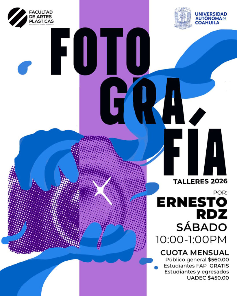 La Facultad de Artes Plásticas (FAP) “Profesor Rubén Herrera” de la Universidad Autónoma de Coahuila invita a la comunidad universitaria y al público en general a inscribirse en los “Talleres de Arte 2026” programados para iniciar el 30 y 31 de enero de 2026 en las instalaciones del plantel en Ciudad Universitaria de Arteaga.