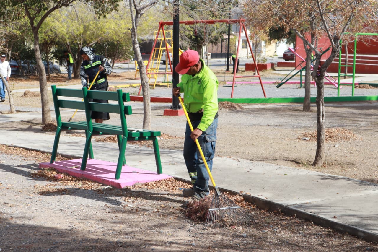Asimismo, para impulsar el amor al deporte, las actividades al aire libre y fortalecer el tejido social, el Gobierno de Saltillo intervino con acciones de limpieza general, deshierbe y poda la plaza pública de la colonia Morelos, ubicada entre las calles G, H y calle 15.