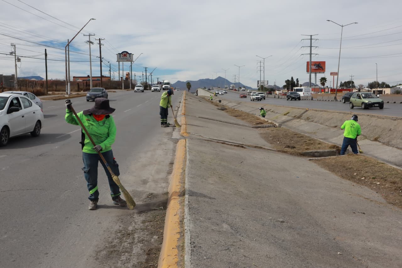 Además, para fortalecer la seguridad vial de saltillenses y visitantes a la ciudad, distintas brigadas municipales intervinieron las áreas verdes del camellón central y laterales del bulevar Fundadores, con trabajos de eliminación de basura, escombro y deshierbe, principalmente en el tramo comprendido entre el bulevar Morelos y el bulevar Solidaridad, al oriente de la ciudad.