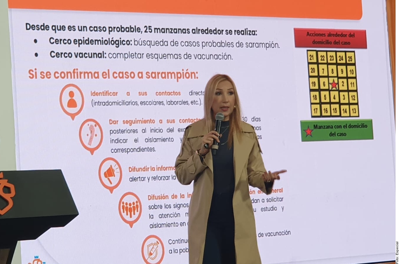La funcionaria explicó que este cerco de prevención se aplica en 25 manzanas a la redonda de donde habita el paciente, y en el Colegio Cambridge Unidad Cumbres, donde estudia.