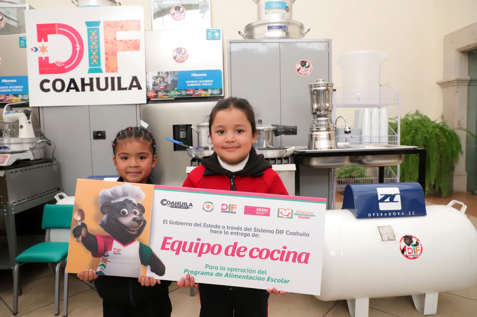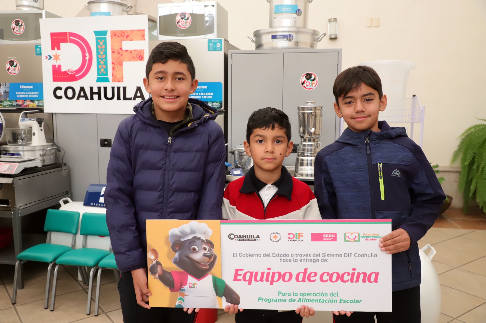 Con el objetivo de fortalecer la alimentación y el desarrollo integral de la niñez coahuilense, el DIF Coahuila llevó a cabo la entrega de equipo de cocina como parte del Programa de Alimentación Escolar que fue puesto en marcha el año pasado por el gobernador Manolo Jiménez Salinas.