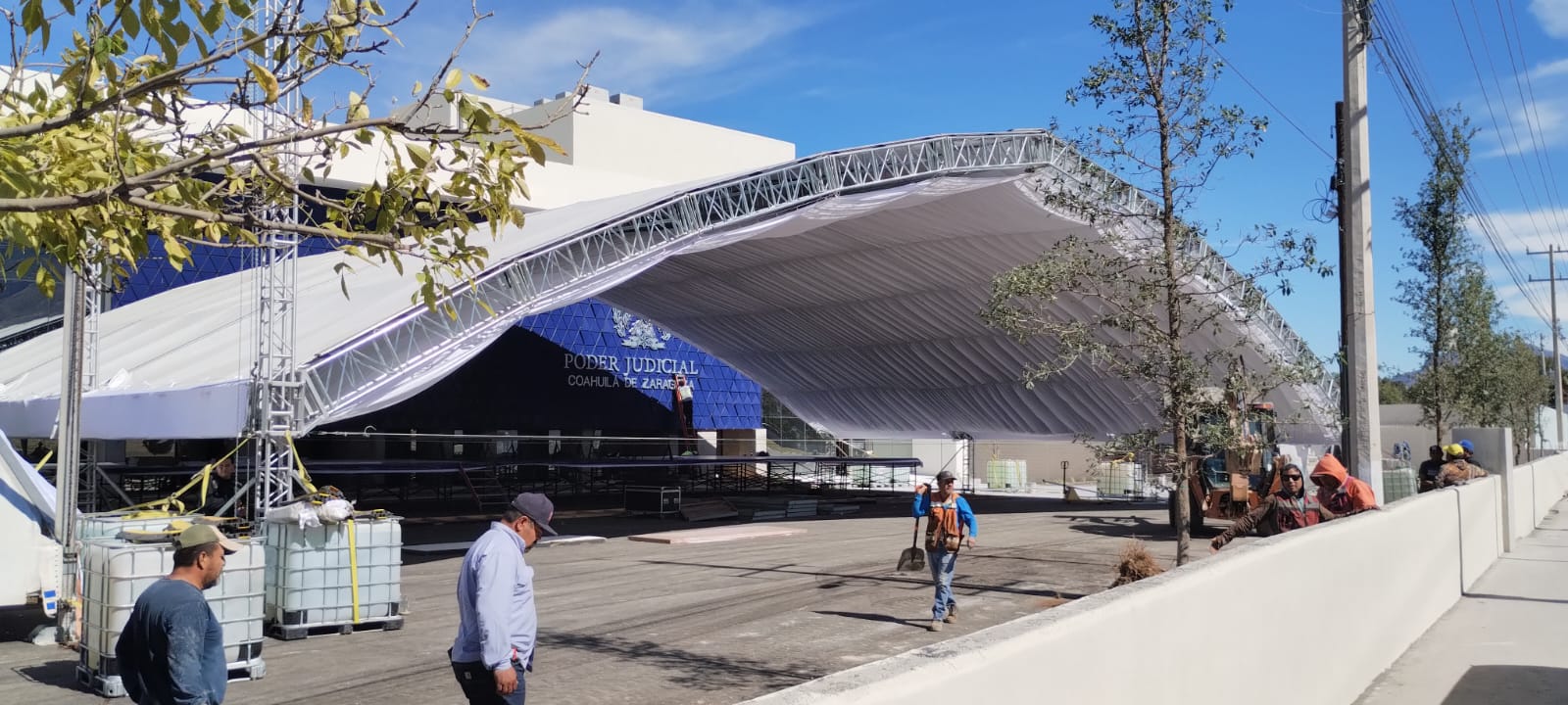 Una cuadrilla de trabajadores se encarga este fin de semana de los últimos preparativos a fin de que el martes 27 de enero, como está programado, se lleve a cabo la inauguración de la Ciudad Judicial, en un evento que encabezará el gobernador Manolo Jiménez Salinas, el presidente del Poder Judicial de Coahuila, Miguel Mery Ayup y la presidenta de la Junta de Gobierno del Congreso del Estado, Luz Elena Morales Núñez, entre muchas otras personalidades.