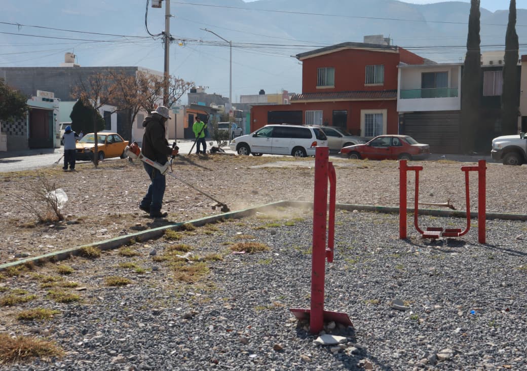 Para impulsar el amor por las actividades al aire libre y fortalecer el tejido social, personal municipal intervino con acciones de barrido, limpieza, eliminación de basura y maleza en la plaza pública del fraccionamiento Santa Lucía, ubicada entre el bulevar Misión Santa Lucía y la calle Virginia Masso Masso.