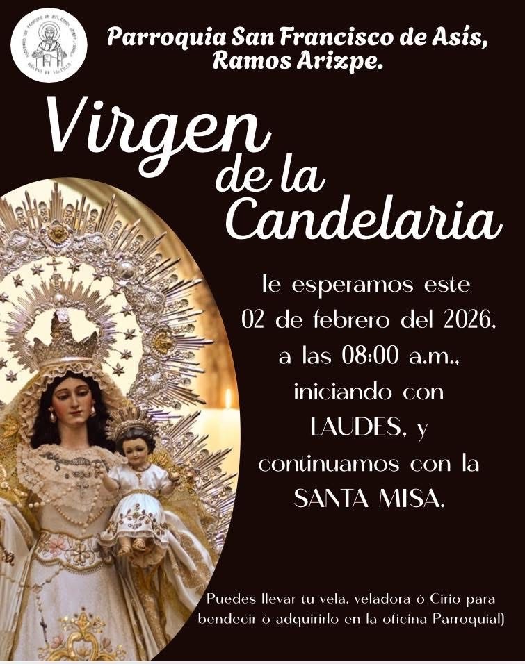 La Parroquia San Francisco de Asís de Ramos Arizpe lanzó una invitación abierta a las familias del municipio para participar este lunes 2 de febrero en la celebración del Día de la Virgen de la Candelaria, una de las tradiciones más representativas del calendario litúrgico católico.