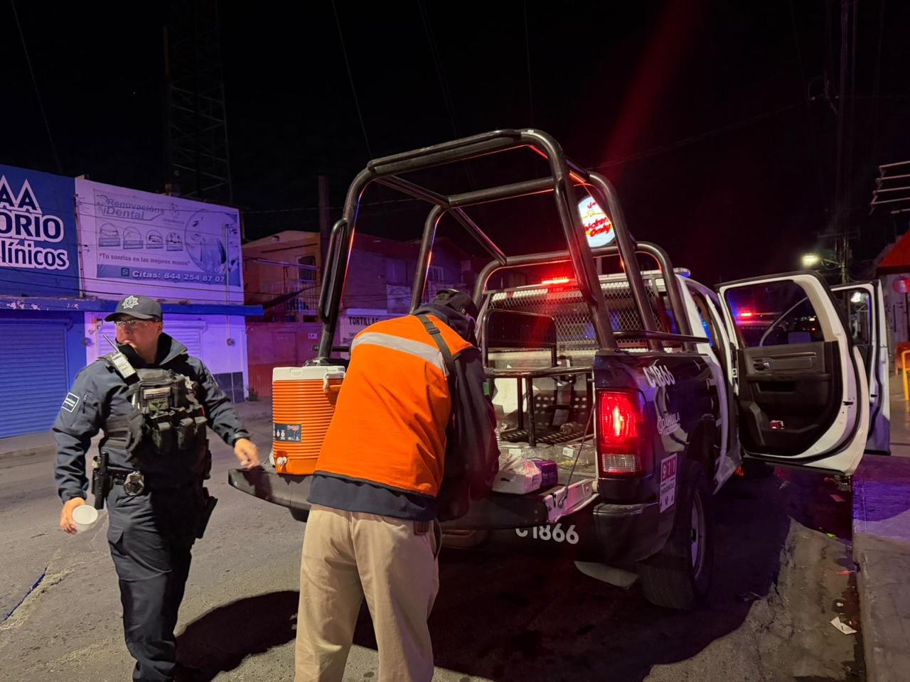 Policía Preventiva reparte pan y café a ciudadanos en hospitales de Saltillo