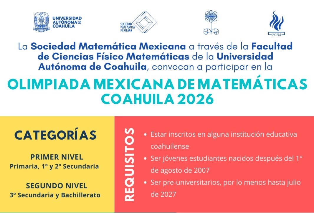 Convocan UA de C y la Sociedad Matemática Mexicana a participar en la 40ª Olimpiada Mexicana de Matemáticas en Coahuila
