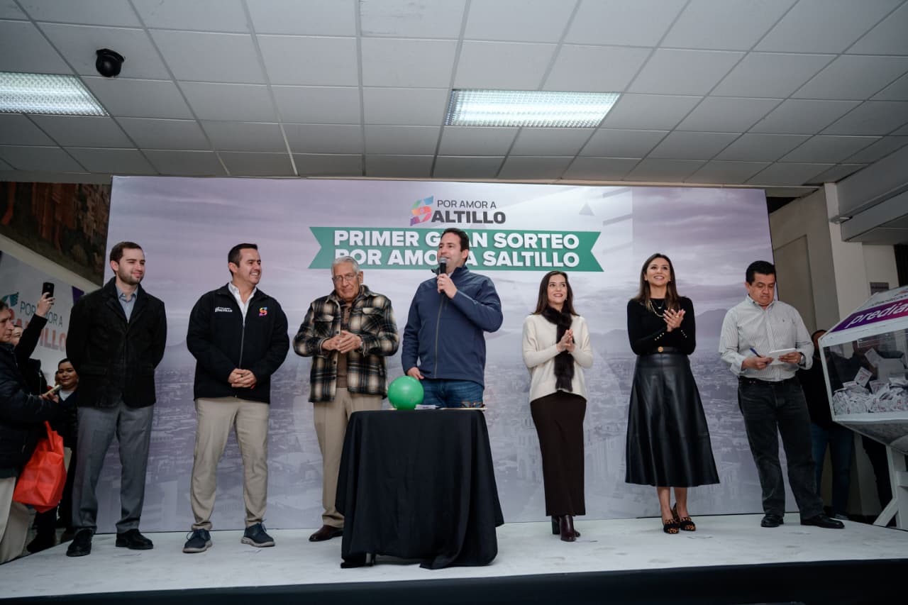 El alcalde de Saltillo, Javier Díaz González, encabezó el Primer Sorteo Por Amor a Saltillo 2026, en el que se premió con 100 mil pesos cada uno a 10 contribuyentes cumplidos que realizaron el pago del predial durante el mes de enero.
