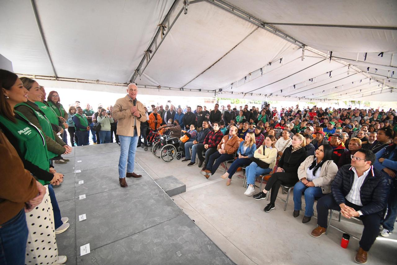 Román Cepeda entrega rehabilitación de cancha de usos múltiples en Nueva Rosita, en Torreón