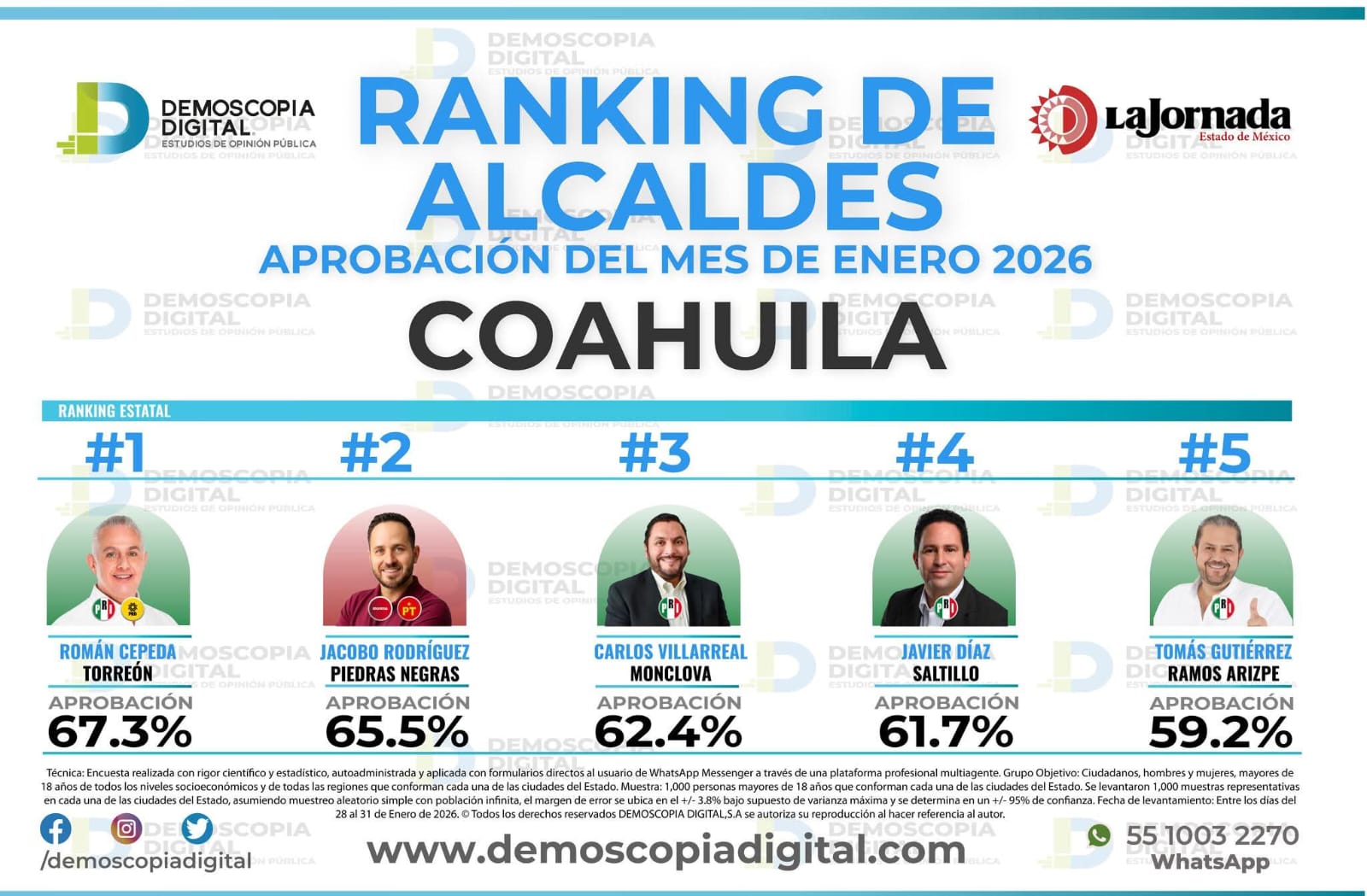 Alcalde de Torreón se posiciona como el mejor evaluado del estado en el mes de enero
