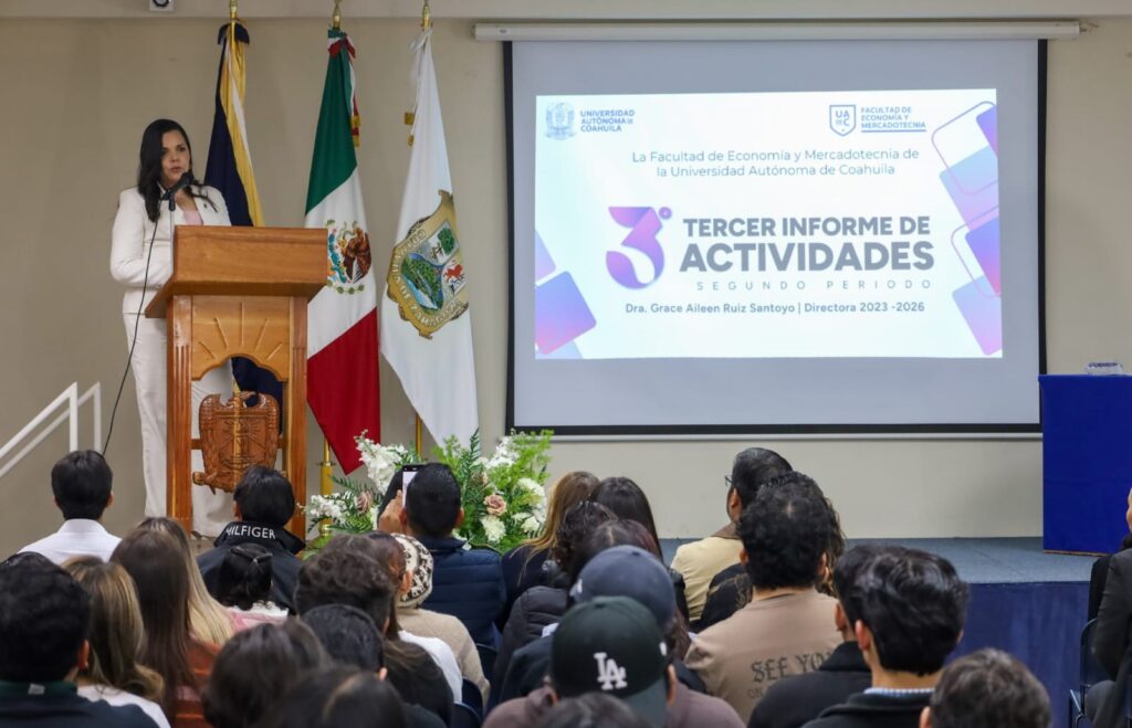Durante su intervención, la directora, compartió con los asistentes los logros y metas alcanzadas durante su administración durante seis años, con principal objetivo de dejar y entregar este plantel mejor de cómo lo recibió, y una muestra de ello, fue la generación y publicación del mayor número de investigaciones científicas en toda la historia de la facultad. (El Heraldo de Saltillo)