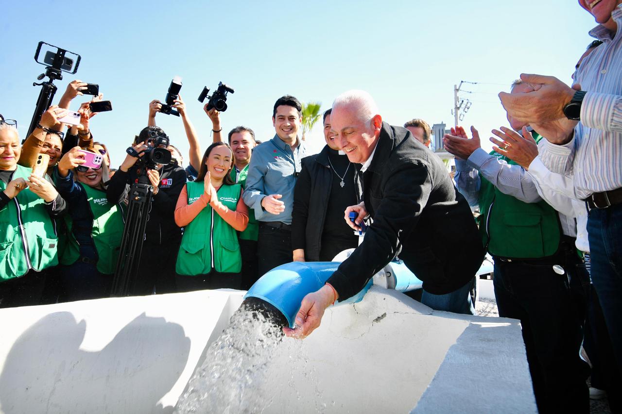 Román Cepeda entrega pozo de agua en Villas Universidad, en Torreón