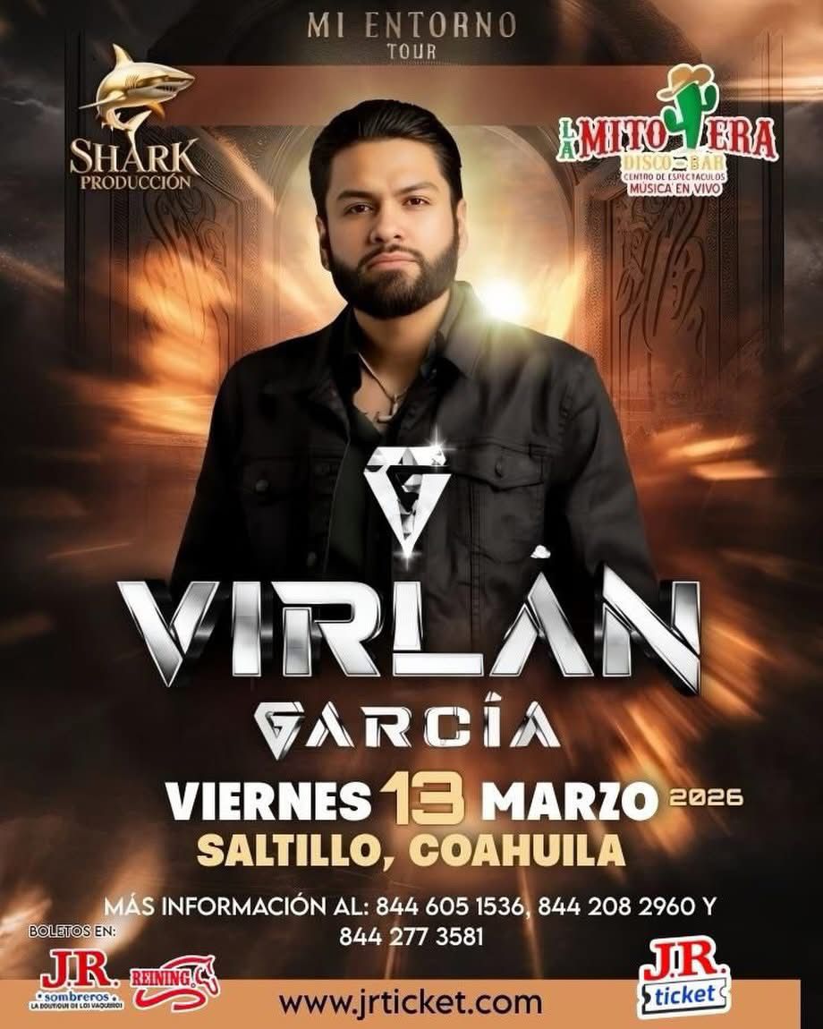 A través de redes sociales, el cantante y compositor de música regional mexicana, Virlán García anunció que llegará a Saltillo próximamente como parte de su actual gira “Mi Entorno”, de mano de la empresa de entretenimiento Shark Producción, y a continuación te contamos todos los detalles.