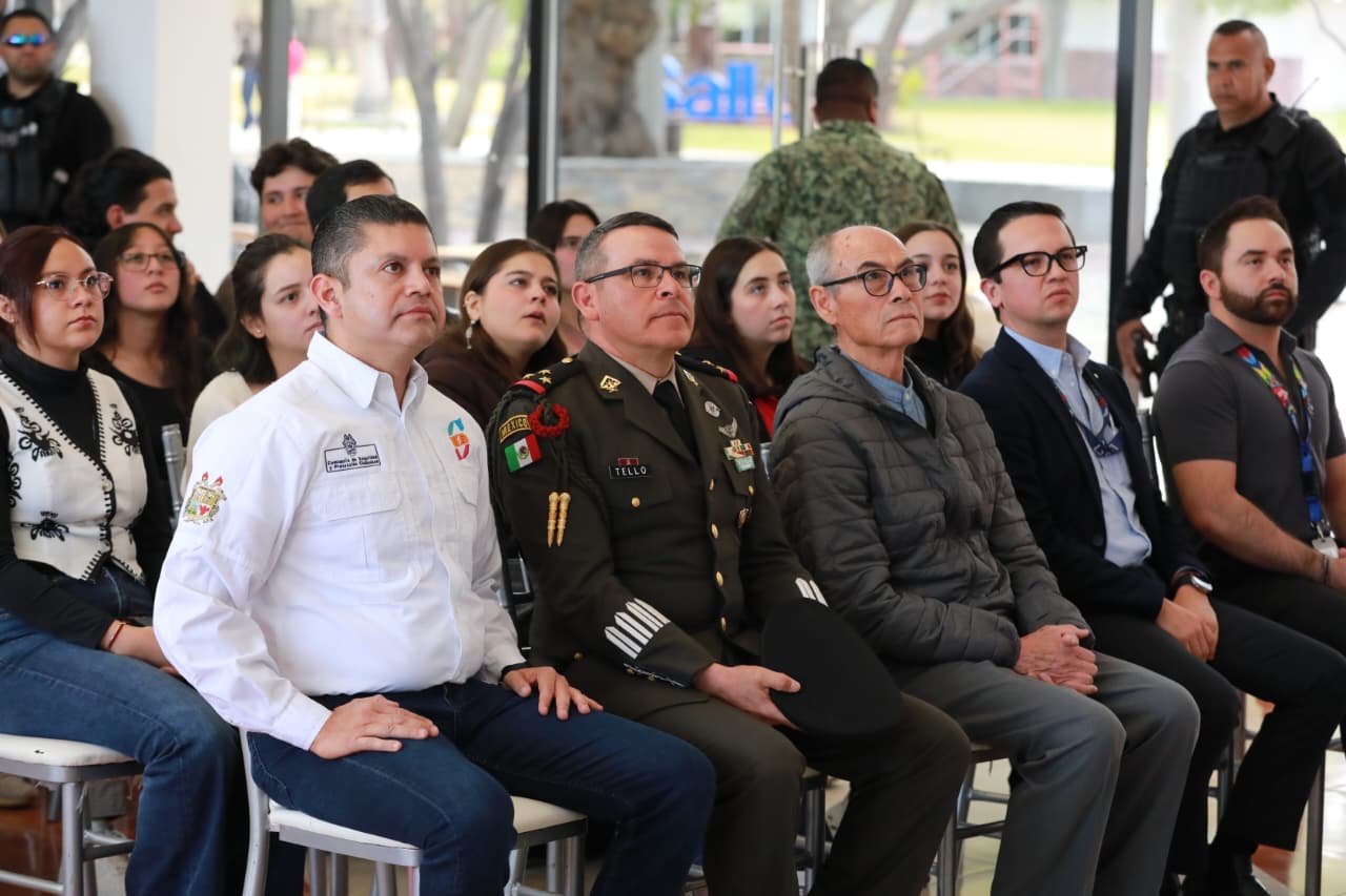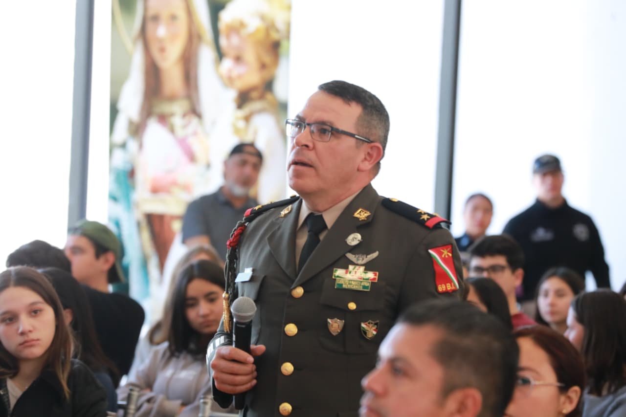 El coronel Luis Adolfo Márquez Tello, comandante del 69 Batallón de Infantería, informó que la seguridad nacional se construye entre todos, y reconoció ante los estudiantes el trabajo de la Policía Municipal de Saltillo.