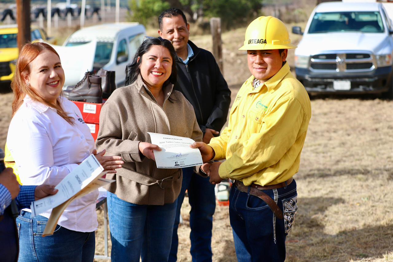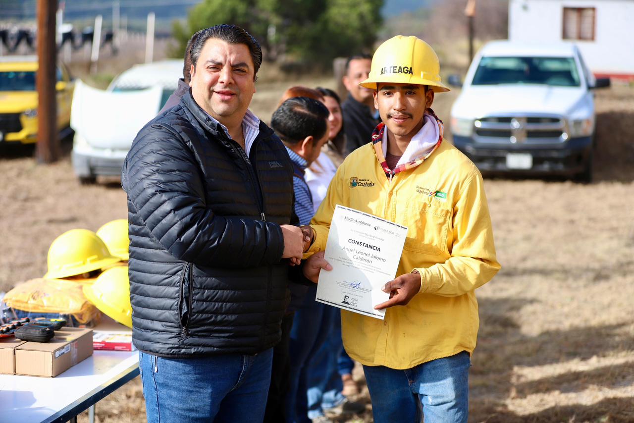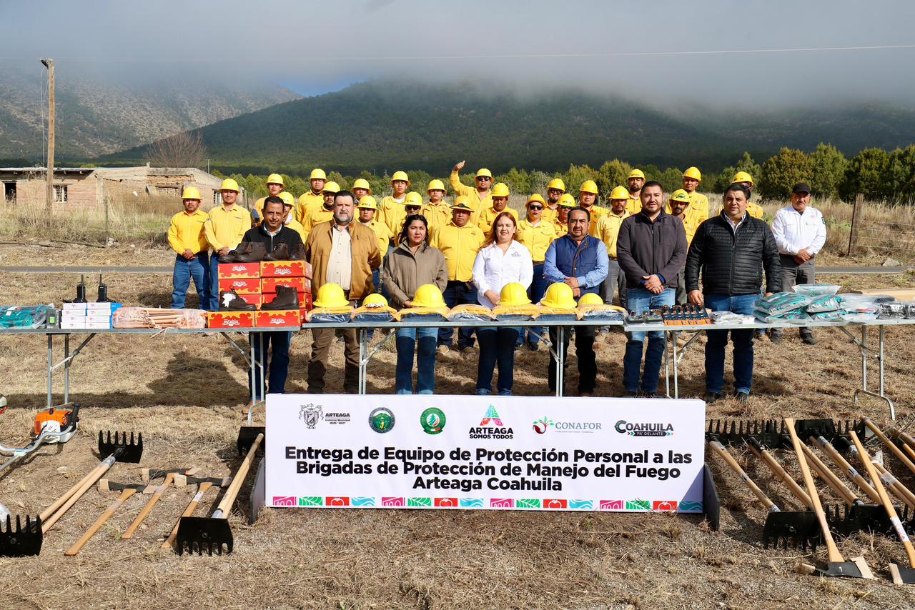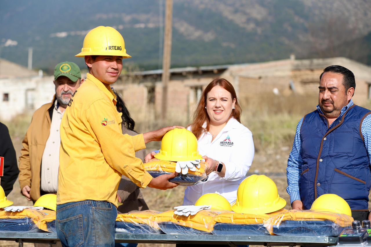 La dotación fue posible gracias al convenio de colaboración con la Comisión Nacional Forestal en Coahuila, mediante el cual se otorgaron botas de seguridad, cascos, uniformes y herramientas especializadas como machetes, azadones y rastrillos, insumos fundamentales para fortalecer las labores de prevención y atención de incendios, así como para garantizar condiciones dignas y seguras a quienes resguardan el patrimonio natural de Arteaga.