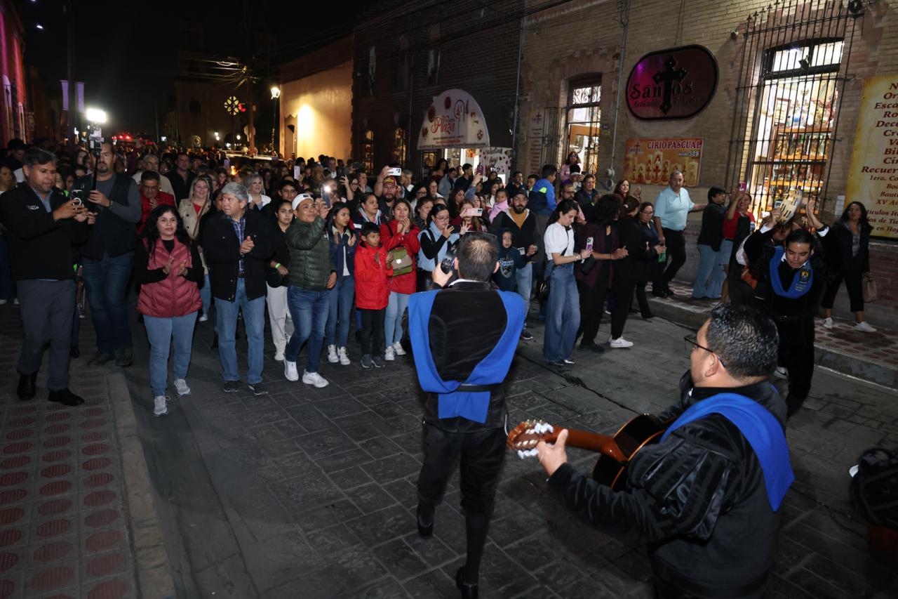 Cientos de saltillenses se dieron cita en la Callejoneada del Día del Amor y la Amistad que se llevó a cabo en el Centro Histórico de Saltillo por parte del Gobierno Municipal, encabezado por el alcalde Javier Díaz González.