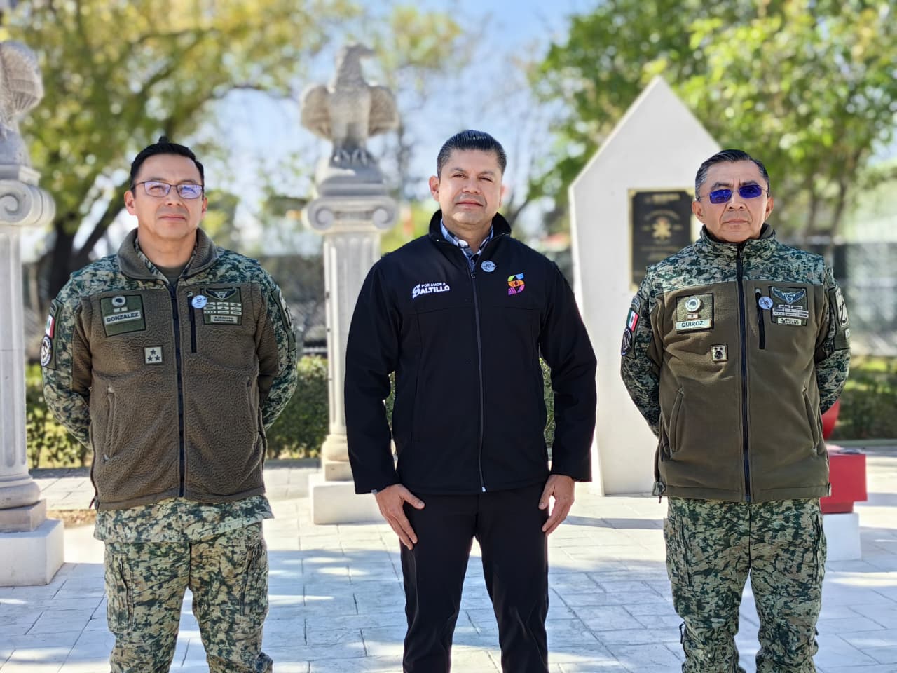 El general Quiroz Muñoz, quien estuvo acompañado del coronel Óscar González, jefe de Estado Mayor de la Sexta Zona, destacó la coordinación que existe con la Comisaría de Seguridad para velar por la paz y la tranquilidad de las familias saltillenses.