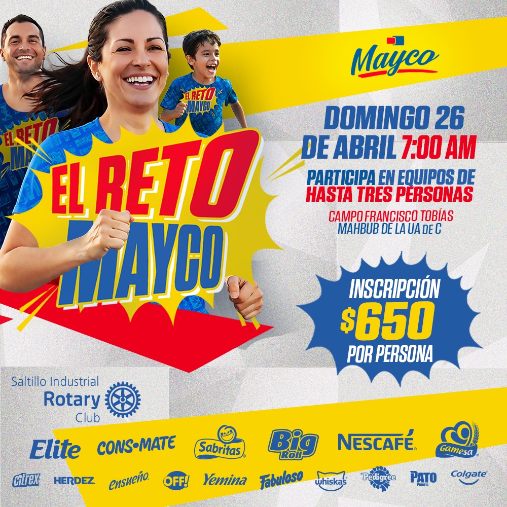 Para recaudar fondos para el programa «Ver para Aprender», mediante el cual el Club Rotario Saltillo Industrial entrega lentes graduados sin costo a estudiantes en situación vulnerable, la empresa Mayco, dedicada a la venta de abarrotes, realizará la primera edición de la Carrera Familiar con Obstáculos «Reto Mayco».