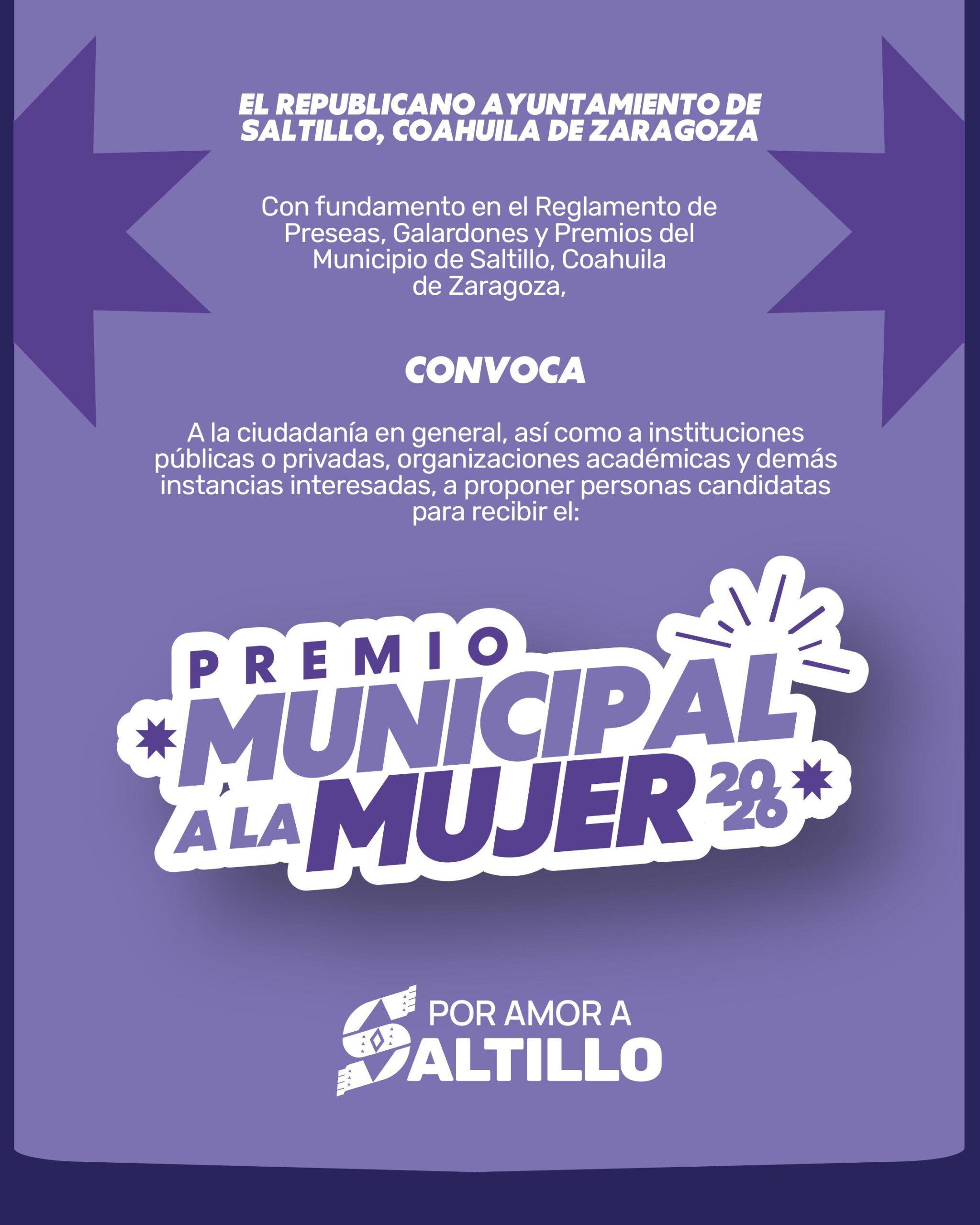 El Gobierno Municipal de Saltillo convocó a la ciudadanía en general, instituciones públicas o privadas, organizaciones académicas y demás instancias interesadas, a proponer candidatas para recibir el Premio Municipal a la Mujer 2026.