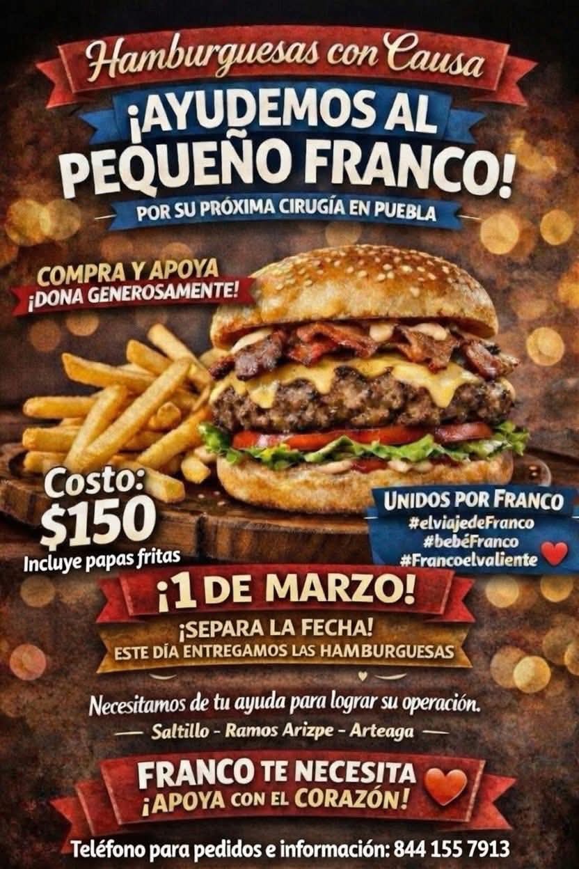 Realizarán venta de hamburguesas con causa para apoyar cirugía del pequeño Franco