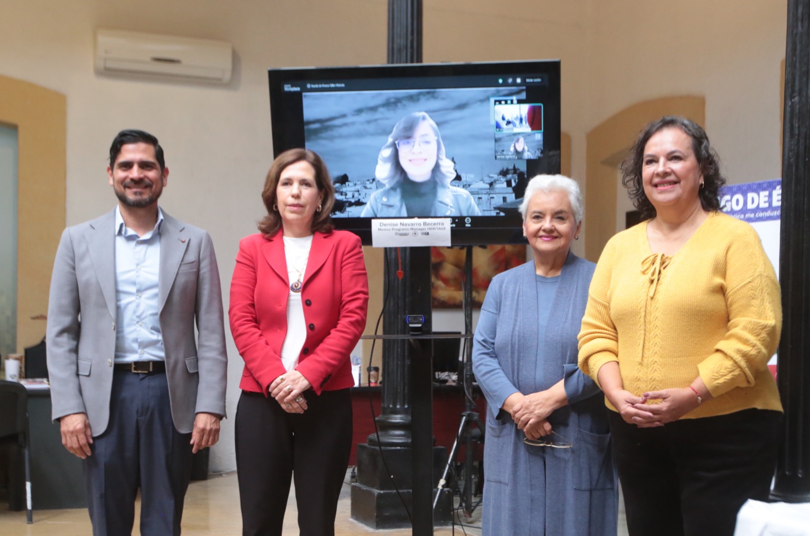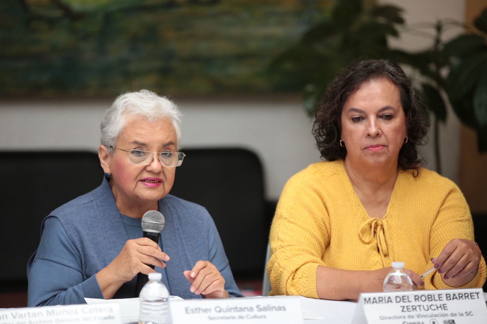 En la rueda de prensa estuvieron presentes además de la Secretaria de Cultura Esther Quintana Salinas, Denise Navarro Becerra, México Programs Manager HERITAGE , María del Roble Barret Zertuche, Directora de Vinculación de la SC, Iván Vartan Muñoz Cotera, Director del Archivo General del Estado y Olivia Strozzi Galindo, directora del Archivo Municipal de Saltillo. (El Heraldo de Saltillo)