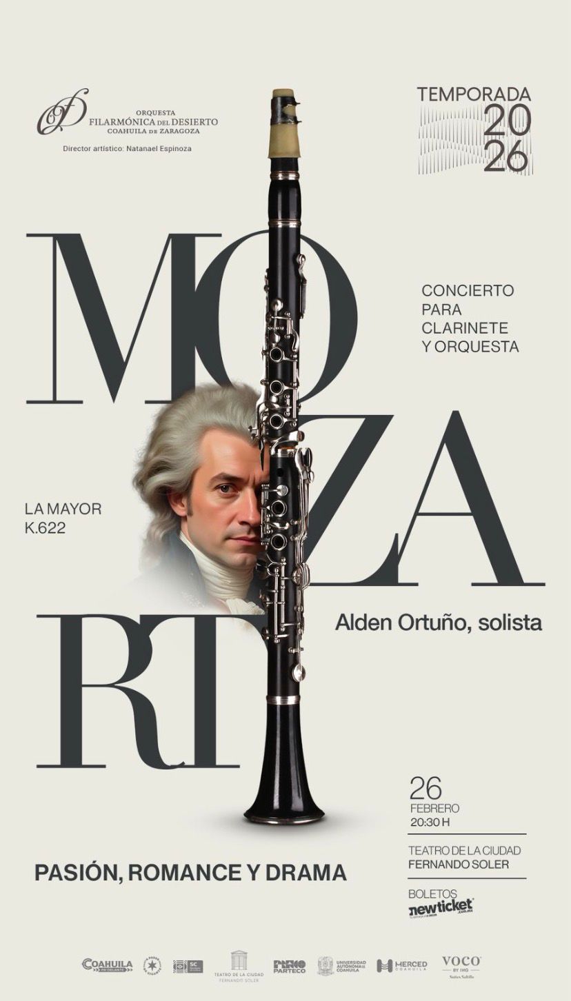 «La Orquesta Filarmónica del Desierto, dentro del marco de su temporada regular 2026, presenta su Segundo Concierto de Temporada. Tenemos el gran honor de volver a interpretar a Mozart, uno de los compositores universales más importantes que se pueden escuchar», compartió Prometeo Murillo, gerente general de la Orquesta.