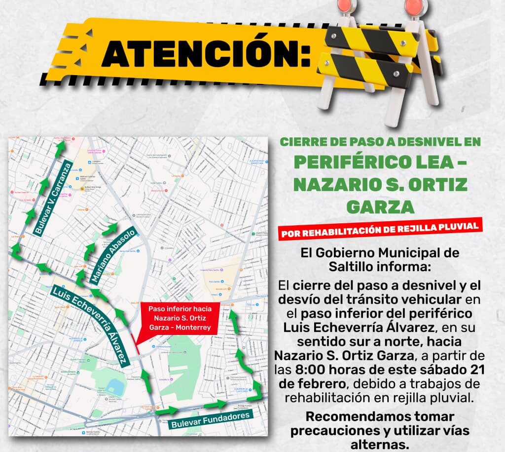 Informa Municipio cierre de paso a desnivel en Luis Echeverría Alvarez hacia Nazario S. Ortiz