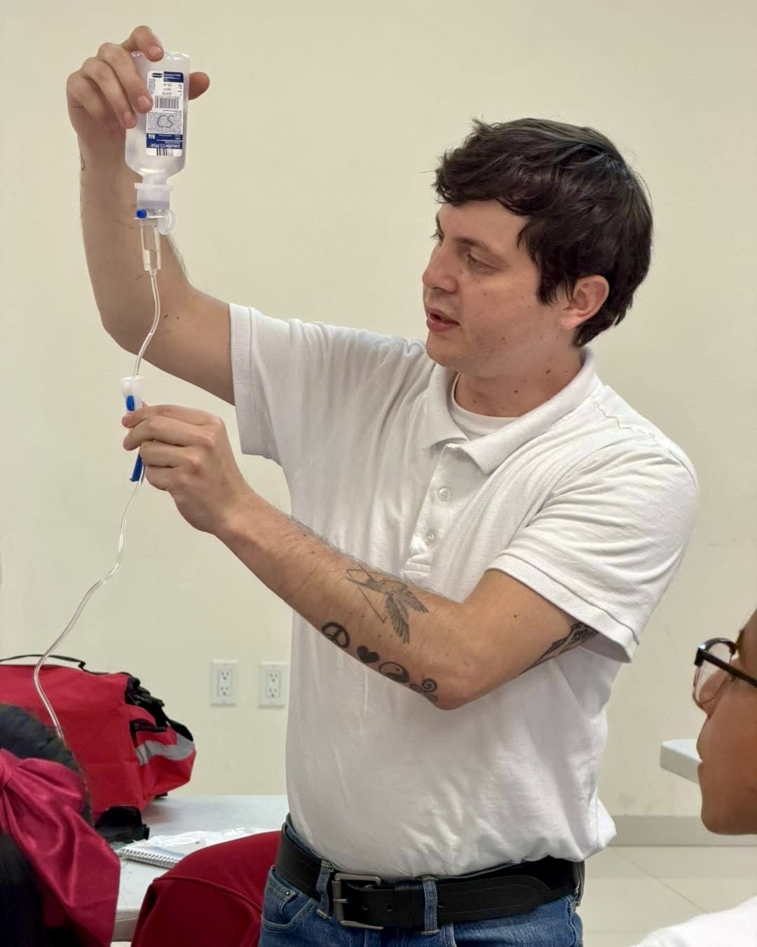 En esta ocasión, como parte de su formación, los alumnos participaron en una clase práctica enfocada en reforzar las técnicas de canalización y el uso correcto de soluciones intravenosas, procedimientos fundamentales en la atención prehospitalaria.