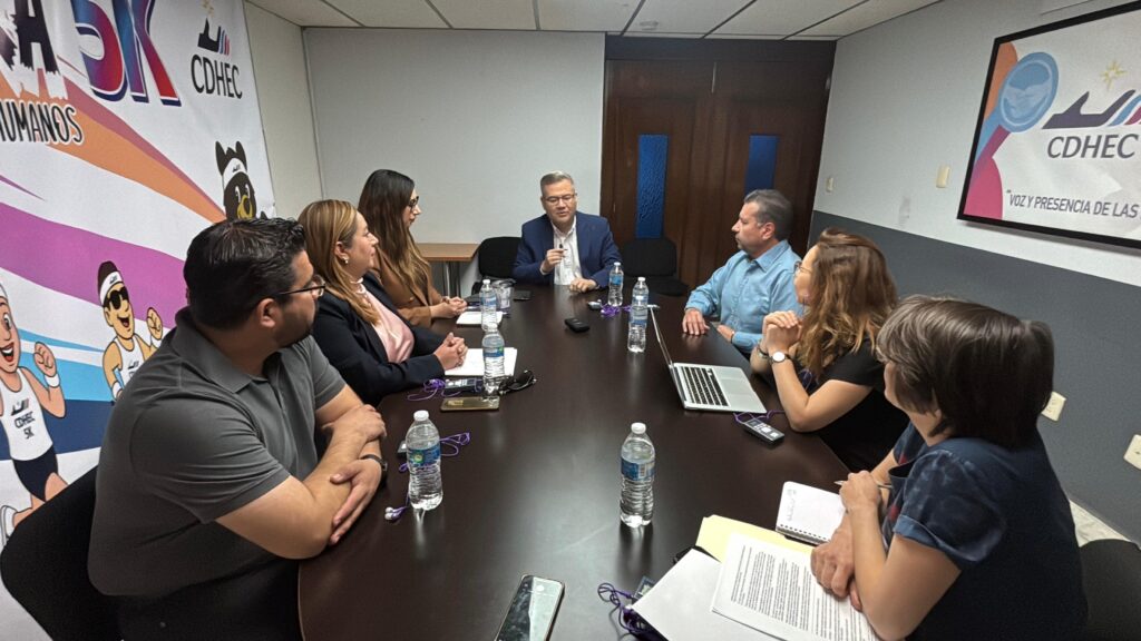 Las integrantes de la Unión Europea, sostuvieron también una reunión en la Comisión de los Derechos Humanos(CDHEC), donde el presidente de dicho organismo, José Ángel Rodríguez, dio la bienvenida a las expertas en el tema, reafirmando su compromiso de trabajar en equipo para el beneficio de los derechos humanos de las personas en cualquier ámbito social y empresarial.