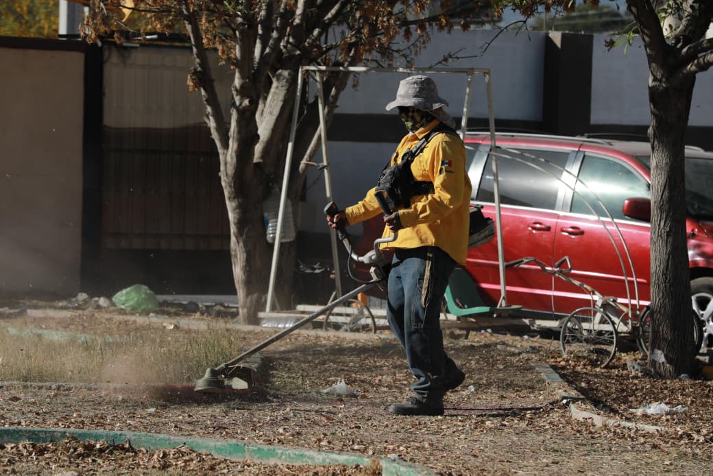 Sumado a esto, brigadas de “Aquí Andamos” realizaron labores de deshierbe, poda y limpieza general de las áreas verdes de las plazas públicas ubicadas en el fraccionamiento El Hacha, al oriente de Saltillo.