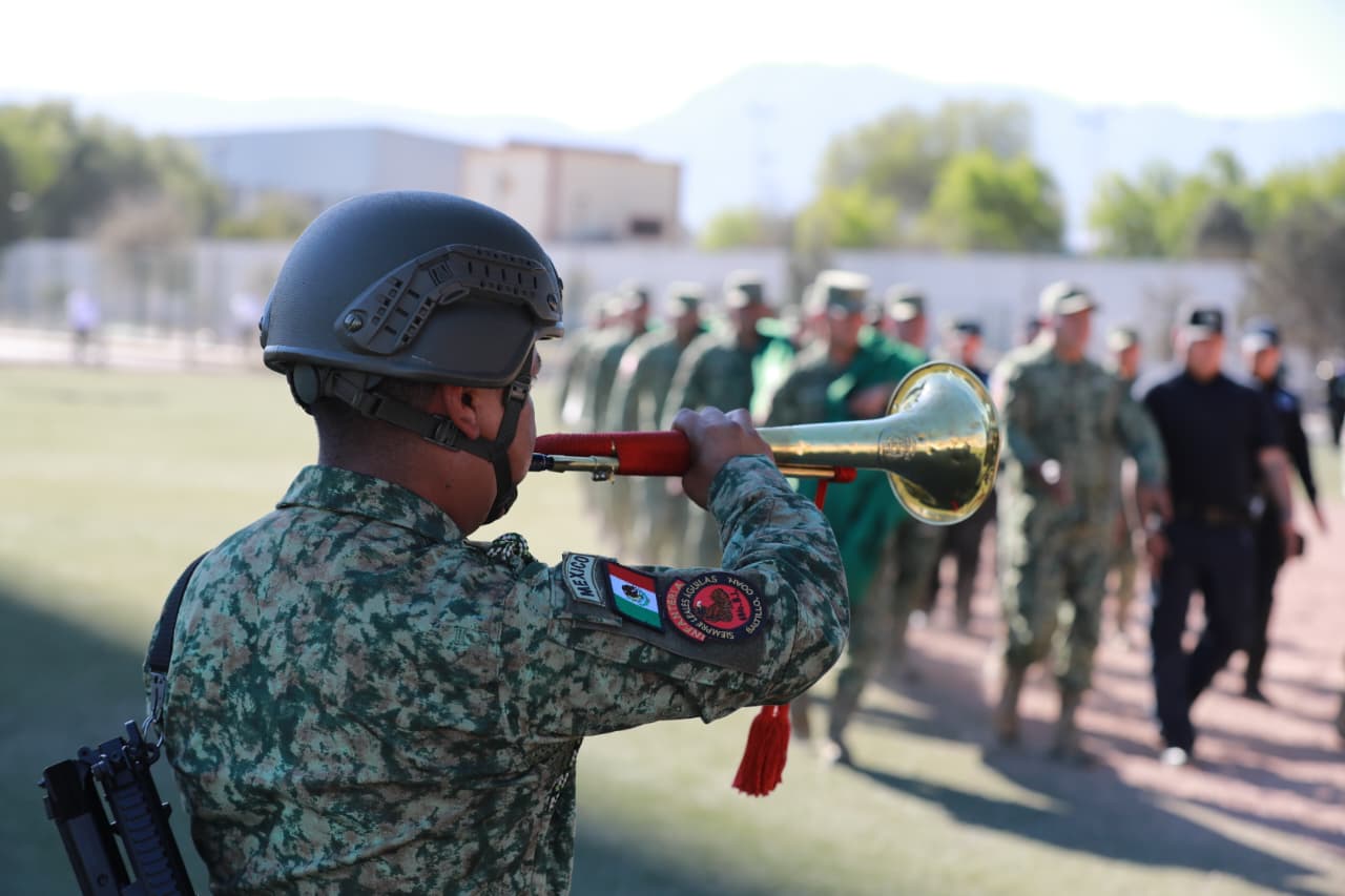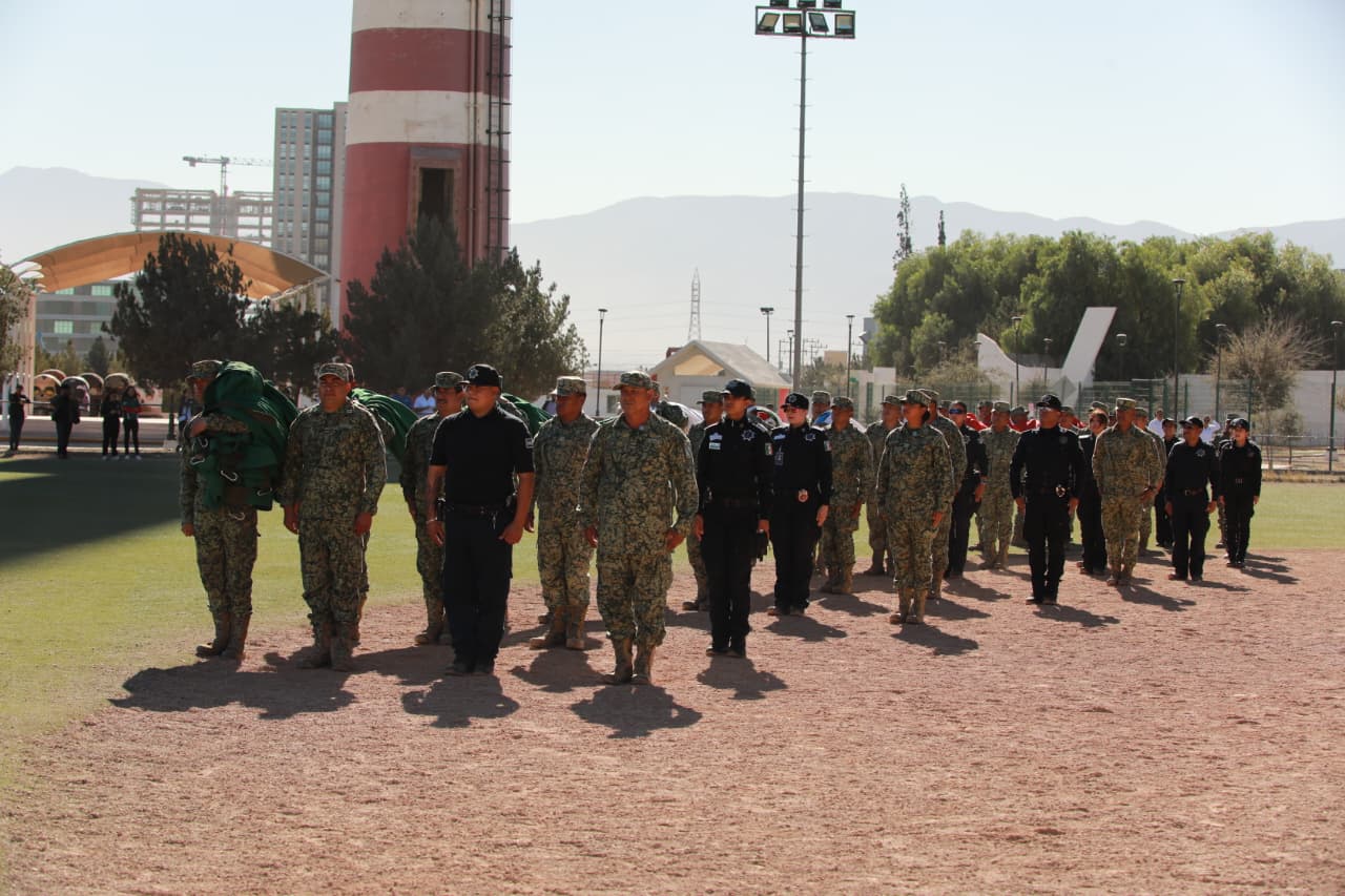 En el marco del fortalecimiento de los valores cívicos, el respeto a los símbolos patrios y en conmemoración del Día de la Bandera, establecido el 24 de febrero, el Gobierno de Saltillo llevó a cabo el evento solemne de Despliegue de la Bandera Monumental y Exhibición de Escoltas y Bandas de Guerra, con la participación activa de personal del Ejército Mexicano, así como de diversas escuelas e instituciones educativas de la ciudad.