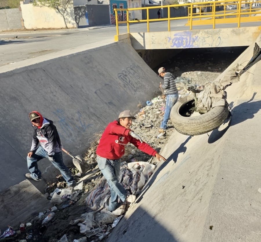 El canal pluvial ubicado en la colonia Parajes de los Pinos continúa registrando acumulación de residuos, debido a que vecinos del sector siguen depositando basura y objetos voluminosos en el lugar. Por lo anterior, el Ayuntamiento de Ramos Arizpe persiste con los trabajos periódicos de limpieza.