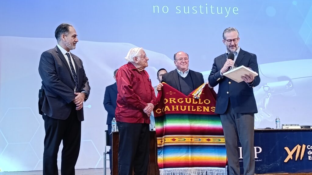 Entre los ponentes se contó con la presencia de Armando Fuentes Aguirre, “Catón”, escritor y cronista de Saltillo, quien compartió reflexiones sobre el papel humanista de la educación frente a los avances tecnológicos. Durante el acto, recibió un reconocimiento por parte de los organizadores del Congreso, en agradecimiento a su trayectoria.