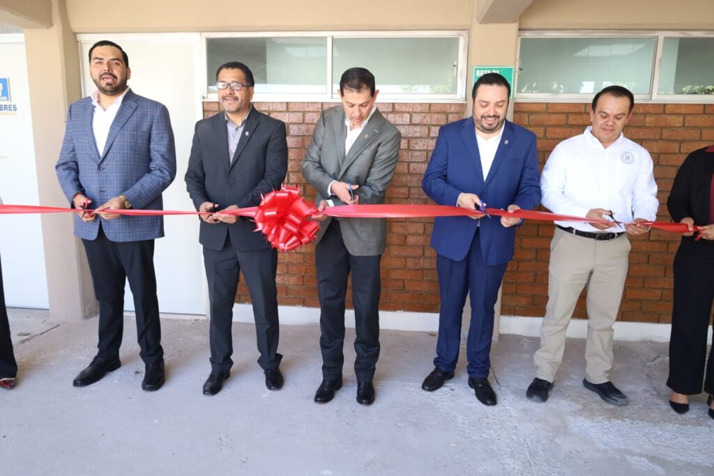 Al término de la ceremonia protocolaria, el rector Octavio Pimentel, acompañado por el director de Planeación, Jesús Alberto Montalvo, el coordinador de la Unidad Laguna, Omar Rojas y el director del plantel, Nahum Arrieta Ruiz, llevó a cabo la inauguración de la remodelación integral de sanitarios.