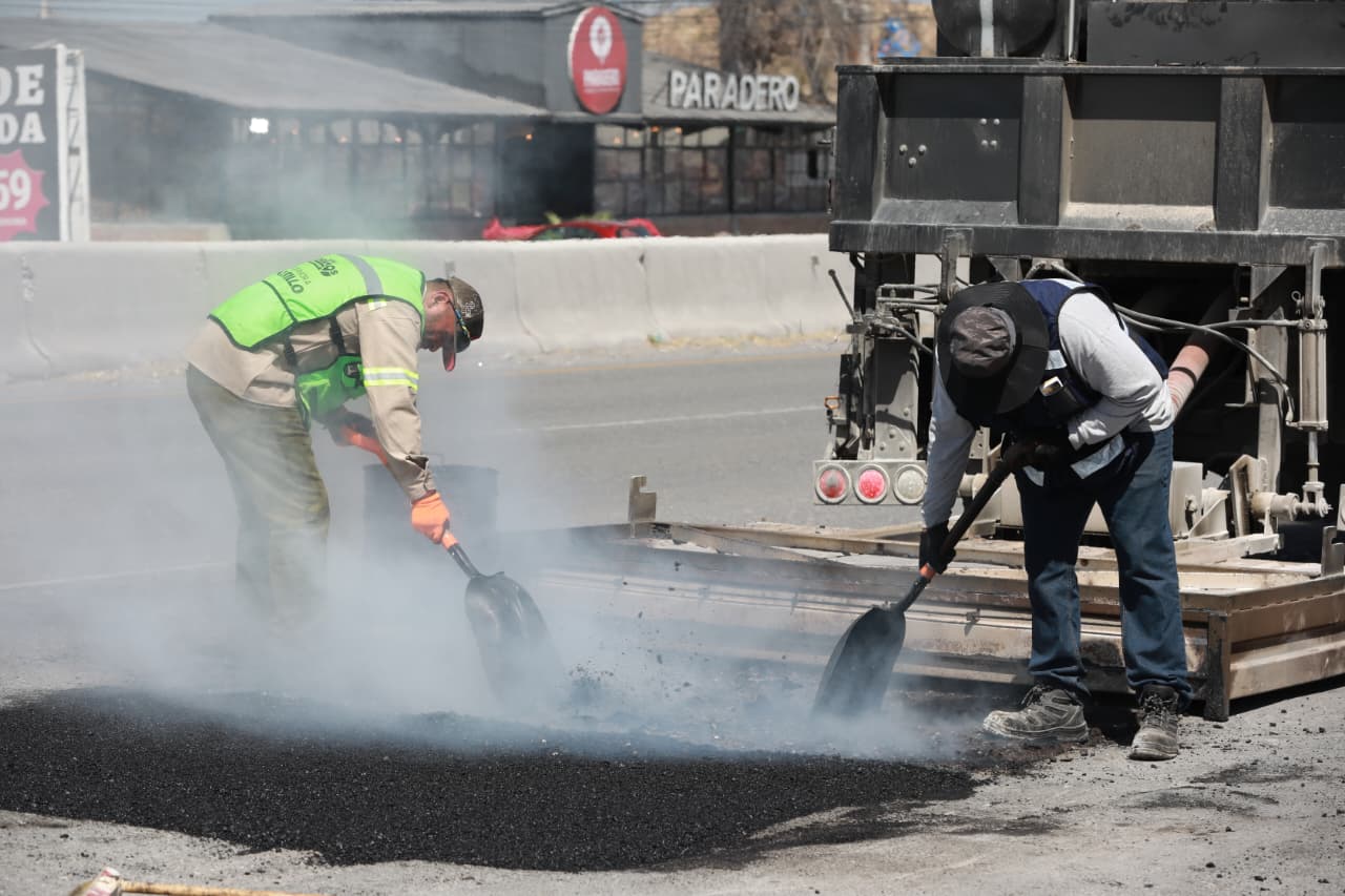 Asimismo, con el respaldo de maquinaria especializada a base de calor, el Ayuntamiento de Saltillo lleva a cabo trabajos de reparación del asfalto deteriorado y reposición de carpeta asfáltica en las principales vialidades de la capital de Coahuila.